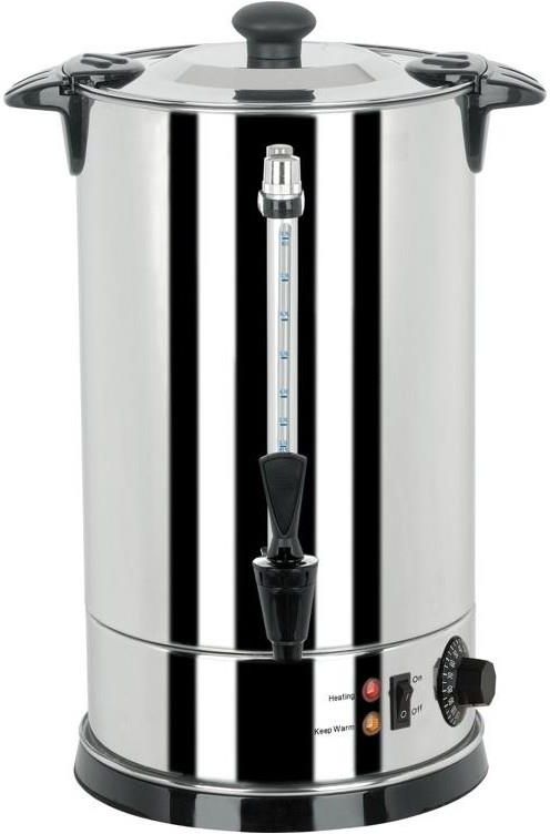YATO Gastro WARNIK DO WODY 16L YATO Numer katalogowy: YG-04318 Warnik do wody marki YATO o pojemności 16L Urządzenie przeznaczone do szybkiego zaparzania dużej ilości wody przeznaczonej do przyrządzania kawy, herbaty lub napojów typu instant. Warnik do wody marki YATO wykonany jest z najwyższej jakości stali nierdzewnej, wypolerowanej na wysoki połysk, dzięki czemu bardzo elegancko prezentuje się w hotelach, salach konferencyjnych czy restauracjach. Wysoka jakość wykończenia połączona jest z niezawodnością wynikającą z użycia bardzo wydajnych grzałek oraz specjalnemu systemowi zabezpieczeń. Grzałka o mocy 2600W znajduje się pod dnem warnika. Takie rozwiązanie posiada szereg zalet. Najważniejszy jest brak kontaktu z wodą, dzięki czemu nie tworzy się na niej kamień, który z czasem może doprowadzić do przegrzania i do awarii. Bardzo Istotna jest także możliwość łatwego czyszczenia pojemnika i jego odkamieniania. Dodatkowo zastosowane zabezpieczenia przeciw przegrzaniu się oraz przed pracą na sucho znacznie wydłużają żywotność urządzenia. Warnik posiada regulację zakresu pracy w przedziale 30~110°C. Natomiast wbudowane lampki kontrole sygnalizują grzanie oraz podtrzymania temperatury. Wyłącznik pozwala natomiast wyłączyć urządzenie bez konieczności odłączania wtyczki z sieci. Na zewnątrz pojemnika znajduje się wskaźnik poziomu wody ze skalą wyrażoną w litrach. Po obu stronach są wygodne, nienagrzewające się uchwyty do przenoszenia. Ich konstrukcja stanowi jednocześnie system TWIST-LOCK dzięki czemu możliwe jest szczelne zamknięcie pokrywki. Zastosowany jest kranik o specjalnej konstrukcji, który zapobiega kapaniu. Plastikowa podstawa ochronna umożliwia zainstalowanie tacki ociekowej YATO YG-04325 - UWAGA Brak tacki w zestawie! Podgrzewanie i gotowanie wody. Wymiary Średnica urny - 268 mm Wysokość - 503 mm Parametry szczegółowe Moc: 2100-2600 W Częstotliwość: 50 Hz Temperatura robocza: 30~110 ˚C Wykończenie powierzchni: chromowana Materiał podstawy: PVC Regulacja temperatury: Tak Podtrzymywanie temperatury: tak Podwójne ściany: nie Zabezpieczenie przed przegrzaniem: tak Ochrona przed pracą na sucho: tak Podziałka: tak Wskaźnik poziomu wody: tak Nienagrzewające się uchwyty, rękojeści: tak Podstawa ochronna: tak Lampka kontrolna: tak x2: grzania i podtrzymania temperatury Wyłącznik: tak Niekapiący kranik: tak Pokrywka: tak, z zabezpieczeniem typu TWIST-LOCK Łatwe czyszczenie: tak Długość przewodu: 1.5 m Klasa izolacji elektrycznej: I Masa: 2.9 kg Kompatybilne z(e): YG-04325 Zastosowanie: do szybkiego zaparzania dużej ilości wody przeznaczonej do przyrządzania kawy, herbaty lub napojów typu instant Marka: Yato Stan: Nowy Pojemność: 16 L Napięcie: 230 V a.c. Materiał: stal nierdzewna 304