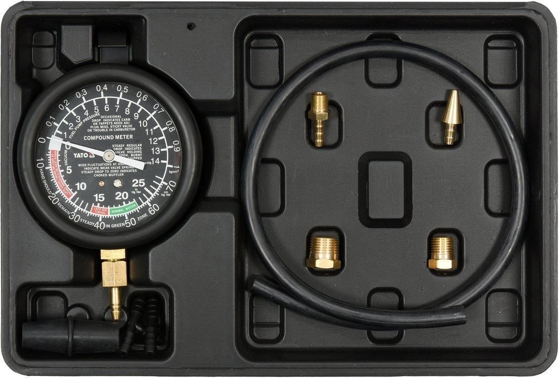 YATO MIERNIK TESTER DO POMIARU CIŚNIENIA PODCIŚNIENIA WAKUOMETR 9 SZTUK CO WYRÓŻNIA NASZ PRODUKT 1✔️Precyzyjna skala pomiarowa od 0 do 14 psi oraz od 0 do 0,1 MPa, umożliwiająca dokładne odczyty ciśnienia. Uniwersalne zastosowanie dzięki 4 wymiennym adapterom z mosiądzu, pasującym do większości marek samochodowych. Trwałość i niezawodność dzięki solidnej konstrukcji i wysokiej jakości wykonania. Wygoda i mobilność zapewniona przez poręczną walizkę do przechowywania i transportu zestawu. PRECYZYJNE ROZWIĄZANIE DLA PROFESJONALISTÓW Wakuometr YATO YT-73050 to wysokiej jakości, 9-częściowy zestaw pomiarowy zaprojektowany z myślą o wymagających warsztatach i serwisach samochodowych. Dzięki precyzyjnej skali od 0 do 14 psi oraz od 0 do 0,1 MPa, umożliwia dokładny pomiar ciśnienia w różnych układach podciśnieniowych, zapewniając niezawodną diagnostykę. UNIWERSALNOŚĆ I KOMPATYBILNOŚĆ Zestaw wyposażony jest w 4 wymienne adaptery wykonane z wytrzymałego mosiądzu, które pasują do większości marek samochodowych. Elastyczny przewód o długości 600 mm, łącznik, rozgałęziacz oraz uniwersalne gumowe przyłącze sprawiają, że urządzenie może być stosowane w różnych aplikacjach i środowiskach pracy. NIEZAWODNOŚĆ I TRWAŁOŚĆ Produkt YATO cechuje się solidną konstrukcją i wysoką jakością wykonania, gwarantując długotrwałą i bezproblemową eksploatację. Dzięki temu wakuometr stanowi niezastąpione narzędzie podczas badania układów hamulcowych, zaworów selenoidowych, elektryczno-podciśnieniowych, wtryskiwaczy, elektrycznych i mechanicznych pomp paliwowych oraz diagnostyki zaworów. WYGODA I MOBILNOŚĆ Zestaw zapakowany jest w poręczną walizkę, ułatwiającą transport i przechowywanie wszystkich elementów w jednym miejscu. Dzięki temu, narzędzie jest zawsze pod ręką, gotowe do pracy w warsztacie lub w terenie, zapewniając maksymalną wygodę i mobilność podczas użytkowania. SPECYFIKACJA Stan: Nowy Marka: Yato EAN (GTIN): 5906083054969 Kod producenta: YT-73050