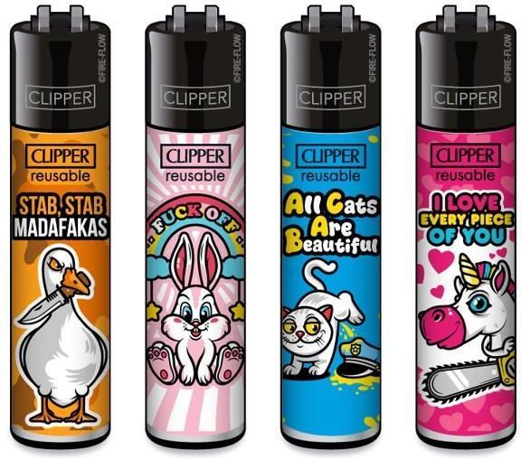Zapalniczka Clipper wzór MIX SLOGAN #7 zapalniczka gazowa wyjmowany ubijak 4 wzory do wyboru opakowanie zbiorcze: 48 szt.