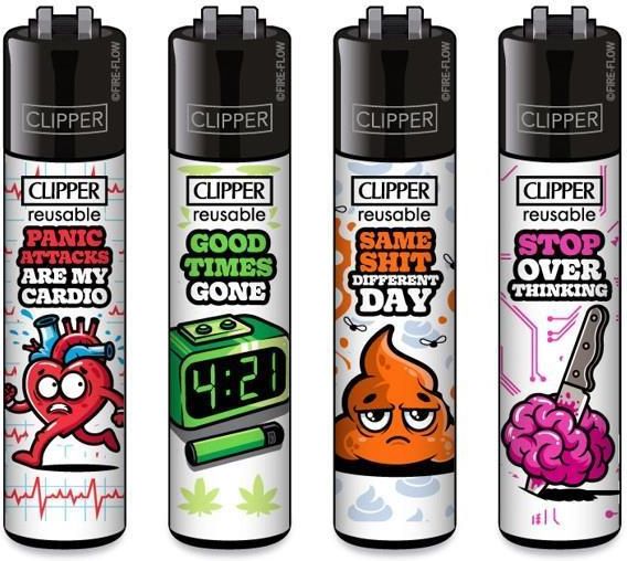 Zapalniczka Clipper wzór MIX SLOGAN #9 - 4 wzory do wyboru - wyjmowany ubijak - opakowanie zbiorcze: 48 szt.