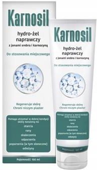 Żel Karnosil naprawczy jony srebra karnozyna 100mlHydro-żel naprawczy z jonami srebra i karnozyną - aktywny dermokosmetyk pobudzający procesy regeneracji skóry. Tworzy ochronną warstwę ograniczającą przeznaskórkową utratę wody oraz negatywny wpływ czynników zewnętrznych, w tym infekcje. Pielęgnuje i pomaga utrzymać w dobrej kondycji skórę podrażnioną, narażoną na: otarcia, rany, skaleczenia, odparzenia, poparzenia i odleżyny.Hydro-żel naprawczy z jonami srebra i karnozyną, Karnosil Przyśpiesza regenerację skóry. Intensywnie nawilża ograniczając przeznaskórkową utratę wody. Chroni skórę przed niekorzystnym wpływem czynników zewnętrznych oraz przed infekcją. Dzięki zawartości d-panthenolu i alantoiny łagodzi wszelkie podrażnienia i zaczerwienienia oraz redukuje uczucie świądu. Jest polecany dla diabetyków, do stosowania na skórę narażoną na uszkodzenia. Sprawdzi się w pielęgnacji skóry osób, u których często powstają odparzenia i odleżyny.Składniki aktywne: jony srebra, karnozyna, d-panthenol, allantoina.Skład: Aqua, Paraffinum Liquidum, Pentylene Glycol, Panthenol, Carnosine, Silver Citrate, Allantoin, Hydroxyacetophenone, Acrylates/C10-30 Alkyl Acrylate Crosspolymer, Triethanolamine, Citric Acid.Przeznaczenie Miejscowe zastosowanie w celu przyśpieszenia regeneracji w przypadku otarć, ran, skaleczeń, odparzeń, poparzeń (w tym słonecznych) oraz odleżyn. Może być stosowany przez diabetyków na skórę narażoną na uszkodzenia.Stosowanie Umyć ręce przed aplikacją preparatu. Oczyścić skórę z zanieczyszczeń, następnie nanieść miejscowo na skórę dużą ilość hydro-żelu naprawczego z jonami srebra i karnozyną, Karnosil. Nie wcierać. W razie konieczności założyć bandaż lub plaster.Uwagi Nie stosować w przypadku alergii lub nadwrażliwości na którykolwiek ze składników preparatu. Przechowywać w temperaturze 5-25C.