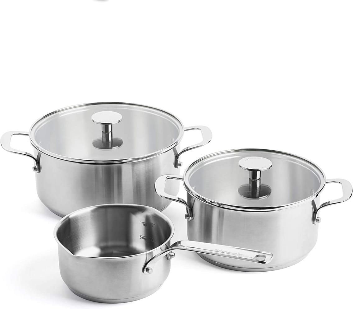 5 elementowy komplet garnków ze stali nierdzewnej marki KitchenAid Jeśli pasjonujesz się kuchnią, potrzebujesz niezawodnego zestawu naczyń do gotowania takiego jak ten. W skład zestawu naczyń kuchennych wchodzą: - garnek o pojemności 3,1L z szklaną pokrywką (średnica 20 cm) - garnek o pojemności …