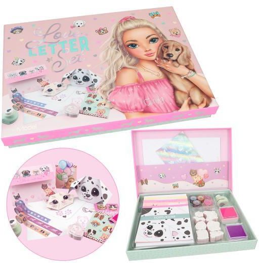 TOP MODEL ZESTAW DO PISANIA LISTÓW MIŁOSNYCH KITTY I DOGGY Seria: TOP MODEL Numer katalogowy: 12881 Wiek: 5+ Na chwile miau i wow podczas pisania listów: Zestaw listów miłosnych od TOPModel w uroczym stylu psa i kota zawiera 10 arkuszy listów, 10 kopert, 1 arkusz srebrnych naklejek, 1 wycinacz serc, 1 dozownik z 4 taśmami, 7 znaczków, 2 atramenty podkładki i 1 instrukcja rzemiosła. Długość 19,5cm Szerokość 26cm Wysokość 3,5cm Waga 0,437 kg