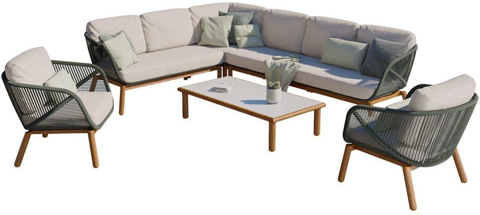 Eleganckie meble ogrodowe wypoczynkowe Auro – komplet z narożnikiem i fotelami meble ogrodowe z przestronnym narożnikiem, stolikiem i dwoma fotelami dają szerokie możliwości aranżacyjne narożnik ogrodowy zapewnia wystarczającą ilość miejsca, a dodatkowe fotele sprawiają, że komplet można z …