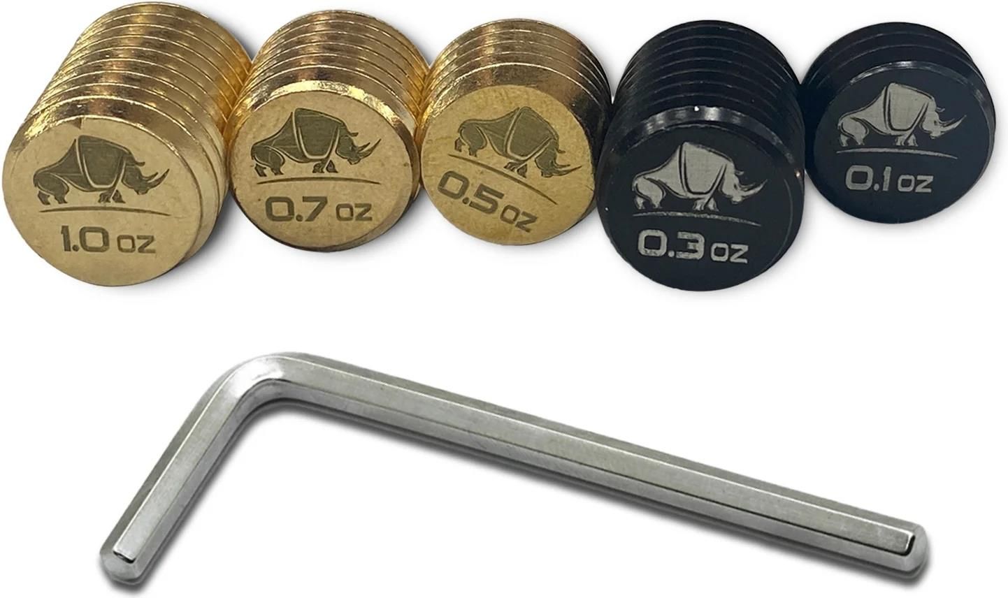 Zestaw śrub wagowych Rhino wraz z imbusem Śruby wagowe do kijów marki Rhino. Pozwala na optymalne dostosowanie kija do swoich preferencji – zmień śrubę wagowąi dopasuj kij do swoich potrzeb. Imbus w zestawie. [[en]] {{RHINO weight Bolt Kit}} RHINO weight Bolt Kit Adjust the weight of the cue using a dedicated bolt of the appropriate weight.