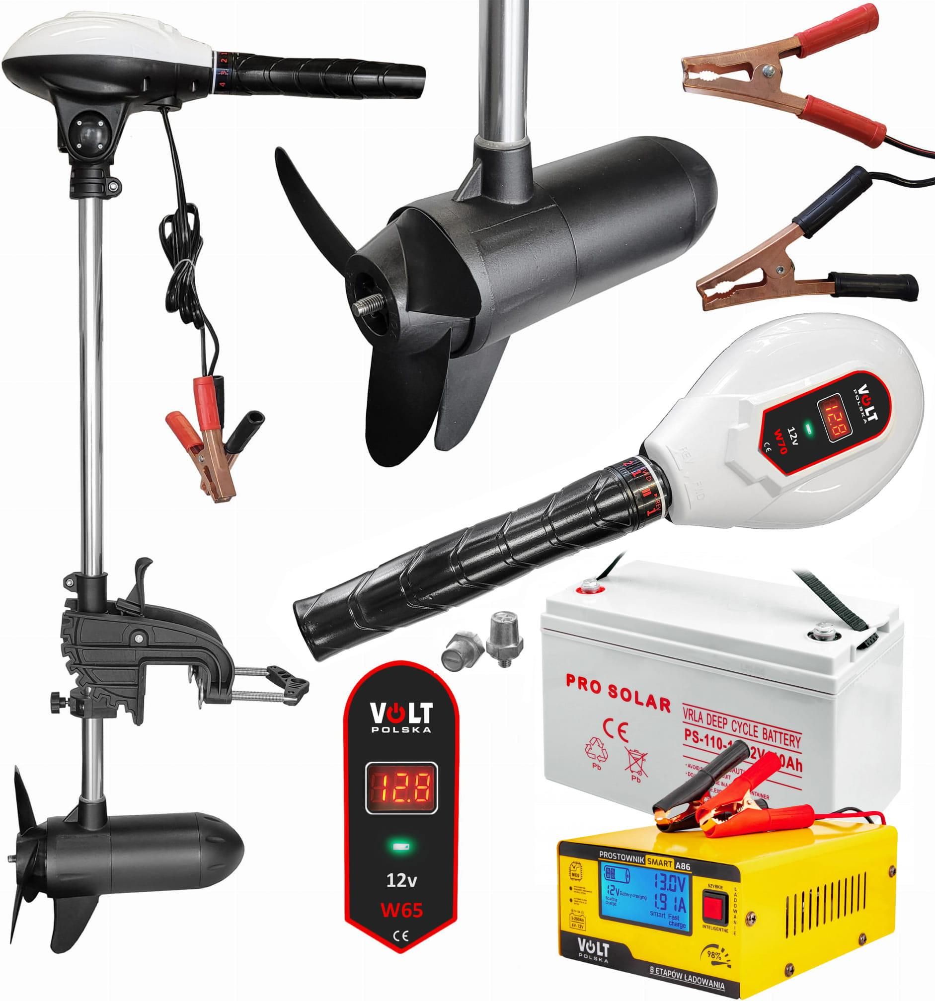 Zestaw: zaburtowy silnik elektryczny Volt Polska Wicher 70 z prostownikiem A86 + akumulator Volt DEEP CYCLE VPRO SOLAR 12V 110Ah (ponton, łódka, łódź) Katowice