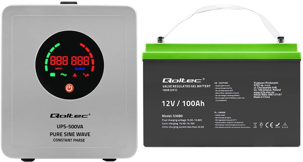 Zestaw: zasilacz awaryjny Qoltec Pure Sine Wave UPS 500VA/350W SF + akumulator żelowy Qoltec GEL Professional LongLife 12V 100Ah Katowice