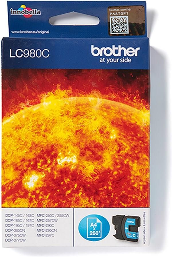 Brother LC-980C Wydajność druku do 260 stron zgodnie z normą ISO/IEC 24711 Wysokiej jakości, oryginalny tusz firmy Brother Oszczędność papieru, czasu i pieniędzy Opis produktu  Brother LC-980C Oryginalny tusz firmy Brother w kolorze cyan LC-980C został opracowany w celu zapewnienia najwyższej jakości każdego wydruku. Tusz posiada właściwości zapobiegające blaknięciu, co sprawia, że kolory są żywe i zachowują swoją intensywność na dłużej. Zakup oryginalnych tuszy jest gwarancją ochrony drukarki atramentowej przed ewentualnymi uszkodzeniami spowodowanymi przez zamienniki. Kompatybilne z Brother DCP-145C, DCP-165C, DCP-195C, DCP-365CN, DCP-375CW, MFC-250C, MFC-290C, MFC-295C. Więcej informacji o produkcie Brother LC-980C Przy zamawianiu tuszu do drukarki atramentowej warto polegać na kartridżu LC-980C firmy Brother w celu utrzymania jak najlepszego stanu urządzenia i zapewnienia najwyższej jakości druku. Wymiana tuszu na tańszy zamiennik może wydawać się atrakcyjną decyzją. Należy jednak pamiętać, że może on nie tylko negatywnie wpłynąć na jakość druku, ale doprowadzić również do długotrwałych uszkodzeń drukarki. Oryginalny tusz LC-980C w kolorze cyan zapewnia poprawne funkcjonowanie urządzenia a w długiej perspektywie gwarantuje lepszy stosunek jakości do ceny. LC-980C to świetne rozwiązanie do domu czy małego biura szukającego oszczędności przy zapewnieniu wysokiej jakości wydruków.