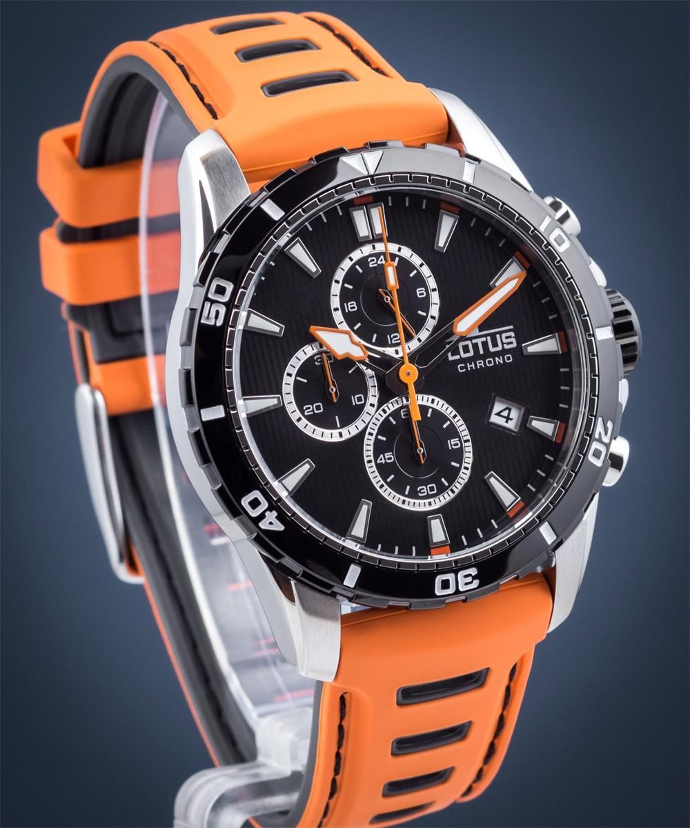 Marka: LOTUS | Kolekcja: LOTUS R | Model: L18600/2 | Kolor: pomarańczowy | Kolor koperta: srebrny ton | Materiał koperty: stal nierdzewna | Zasilanie: bateria | Materiał paska: skóra | Funkcje: 24-godzinna tarcza zegara | Funkcje: Data - dzień miesiąca | Funkcje: Stoper 1/1 sekundy - 30 minut | Średnica zegarków / tarczy: 45,4 mm | Wodoszczelność: 100M/10ATM | Szkiełko: mineralne | Kształt: okrągłe | Typ zapinania: Standardowe zapinanie | Preznaczenie: męskie | Typ produktu: zegarki | Typ: analogowe | Szerokość paska: 22-19 mm