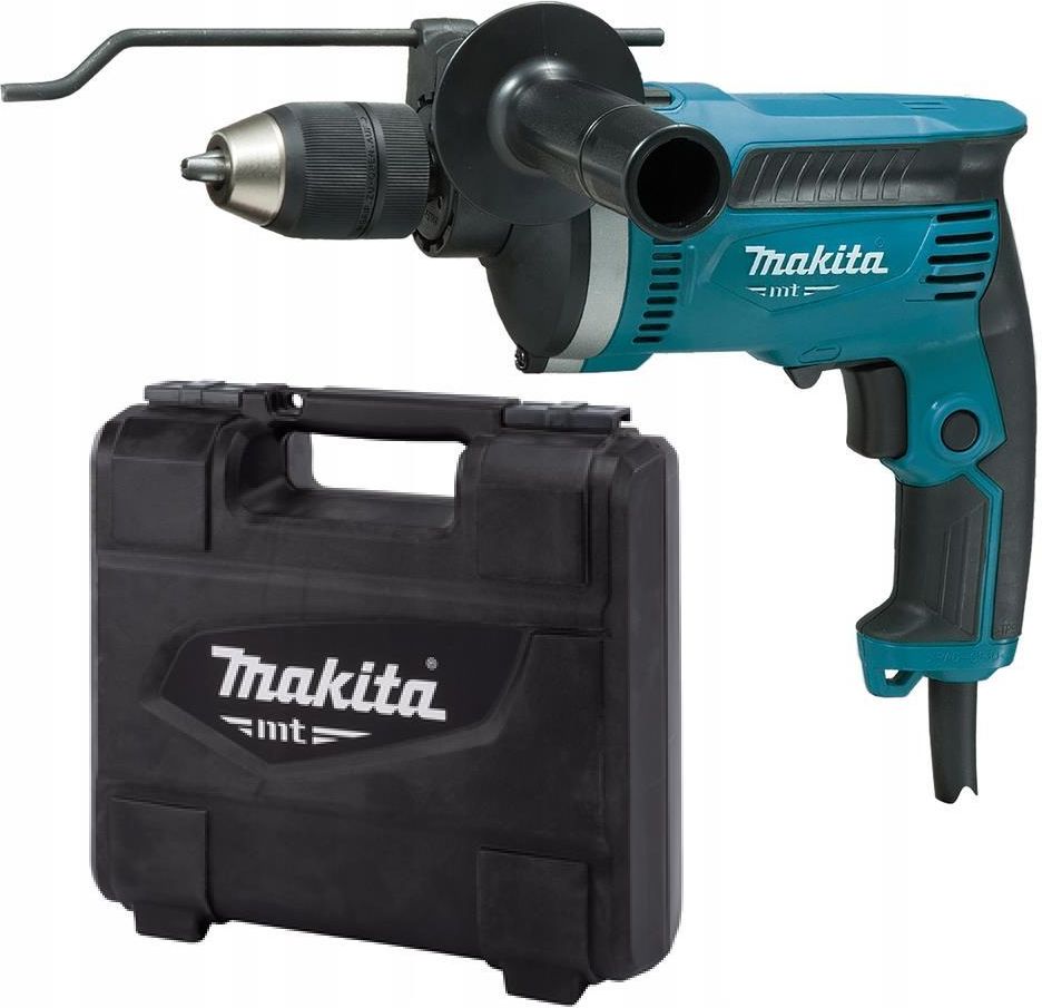 WIERTARKA UDAROWA SIECIOWA 710W 16mm 0–3200obr./min + WALIZKA MAKITA M8101KB Moc znamionowa 710 W – najwyższa w tej klasie. 2 tryby pracy: wiercenie i wiercenie z udarem. Posiada układ regulacyjny, blokadę włącznika oraz dźwignię zmiany trybu pracy. Ergonomiczna konstrukcja korpusu urządzenia. Z samozaciskowym uchwytem wiertarskim. Regulacja prędkości obrotowej za pomocą spustu włącznika. Urządzenie cechuje wytrzymała aluminiowa obudowa przekładni. Korzyści dla użytkownika Praca w 2 trybach dla „Tylko wiercenie" lub "wiercenie z udarem" Duży włącznik spustowy ułatwiający pracę Regulacja prędkości za pomocą pokrętła w celu dopasowania do różnych zastosowań Przełącznik biegu wstecznego dogodnie umiejscowiony Informacje techniczne Moc znamionowa 710 W Maks. moc urządzenia 630 W Prędkość obr. na biegu jałowym 0 - 3200 min⁻¹ Częst. udarów na biegu jałowym 0 - 48000 min⁻¹ Maks. średnica wiercenia w drewnie 30 mm Maks. średnica wiercenia w drewnie (Wiertło świdra) 30 mm Maks. średnica wiercenia w drewnie (Bit do samodzielnego podawania) 60 mm Maks. średnica wiercenia w betonie 16 mm Maks. średnica wiercenia w betonie 16 mm Maks. średnica wiercenia w stali 13 mm Zdolność wiercenia - otwornica 60 mm Zakres mocowania 1,5 - 13 mm Poziom mocy akustycznej 109 dB(A) Poziom ciśnienia akustycznego 98 dB(A) Współczynnik hałasu 3 dB(A) Waga bez kabla 2,0 kg Wymiary (D x S x W) 295 x 77 x 202 mm Poziom wibracji, wiercenie w metalu ≤ 2,5 m/s² Tolerancja wibracji (współczynnik K), Wiercenie w metalu 1,5 m/s² Poziom wibracji, wiercenie z udarem w betonie 16,5 m/s² Tolerancja drgań (współczynnik K), wiercenie udarowe w betonie 2,0 m/s² Przewód zasilający 2,0 m Podwójna izolacja Regulacja prędkości obrotowej Bieg wsteczny Uchwyt szybkomocujący Wyposażenie standardowe Wiertarka udarowa M8101 Uchwyt boczny 153503-4 Samozaciskowy uchwyt wiertarski 196193-0 Miarka głębokości 321144-6 Walizka plastikowa 821656-4