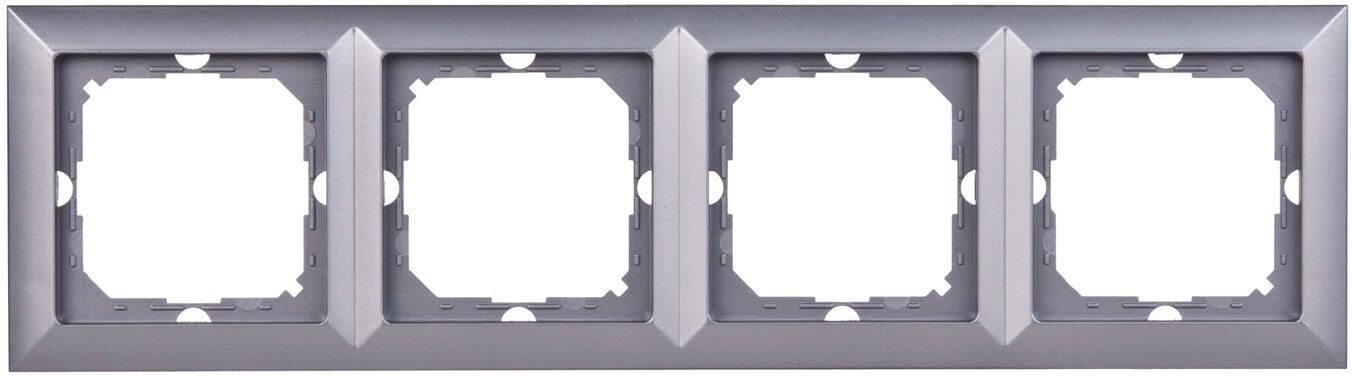 Ramka Perła poczwórna w kolorze srebrnym, marki Abex.Pozwala zamontować obok siebie podtynkowe łączniki i gniazda serii Perła w układzie pionowym lub poziomym. Służy również do ich dekoracyjnego maskowania.Ramka została wykonana z wysokiej jakości