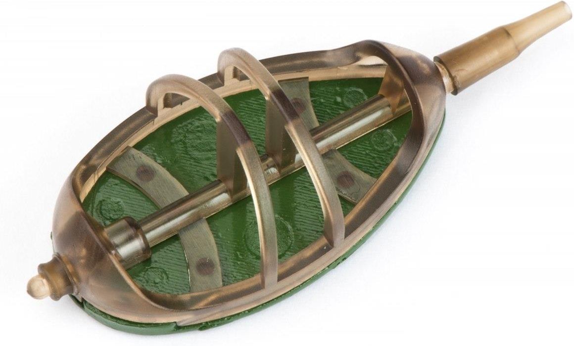 Jaxon koszyczek method feeder 60 + 60 g AF-E360 Koszyk AF-E to konstrukcja stworzona do precyzyjnego umiejscawiania zestawu w wodzie.Kompaktowy, aerodynamiczny kształt pozwala na bardzo dokładne i powtarzalne rzuty, które są podstawą skutecznego łowienia techniką Method Feeder.W zestawie z koszyczkiem znajduje się łącznik, który składa się z trzpienia oraz zewnętrznej osłony. Trzpień z obydwu stron zakończony jest haczykiem, na który z jednej strony mocujemy żyłkę główną, a z drugiej przypon.Ten rodzaj łącznika pozwala na stworzenie samozacinającego zestawu i umożliwia szybką wymianę przyponu.Równy, aerodynamiczny kształt bryły zanętowej zapewnia specjalna, elastyczna forma idealnie dopasowana do koszyka.Tworząc bryłę zanętową, w pierwszej kolejności wkładamy do formy przynętę, którą później zasypujemy zanętą lub pelletem i następnie wciskamy koszyk w wypełnioną formę.Na koniec delikatnie ściskamy formę, luzujemy bryłę i wyciągamy ją na zewnątrz. waga 60g ilość w opakowaniu: 2 szt.