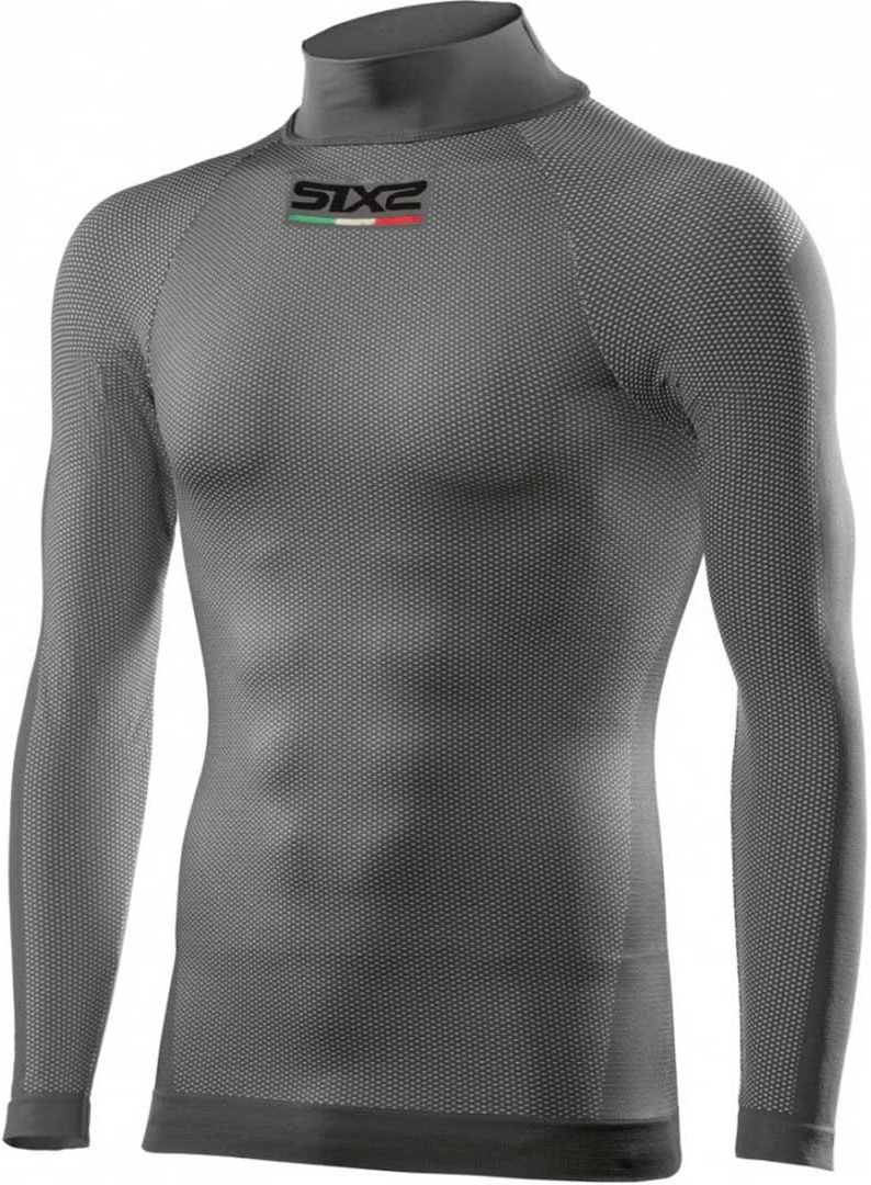 SIXS koszulka z długim rękawem z golfem niezwykle oddycha i termoreguluje ciało w każdych warunkach pogodowych. Długi rękaw obejmuje każdą część ramienia, aby zachować świeżość skóry i leży pomiędzy skórą a wierzchnim ubraniem. Lekko chroni przed zimnymi przeciągami, jeśli nosi się górną część z krótkim rękawem. Wreszcie, pozorny kołnierz z golfem chroni gardło przed nagłymi zmianami temperatury i chłodnymi przeciągami.