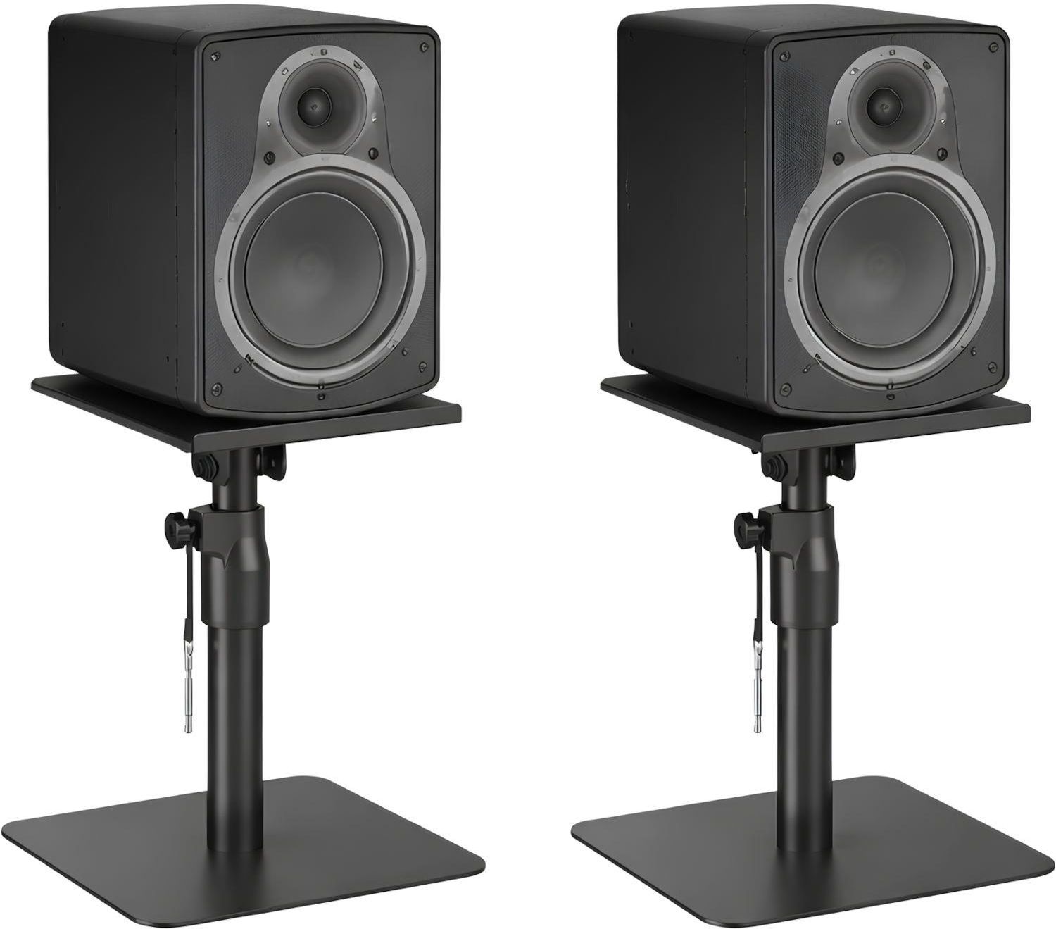 MOZOS MSK8 STOJAKI POD GŁOŚNIKI STUDYJNE MONITORY 2SZT REGULACJA Stabilne i uniwersalne stojaki na głośniki Stabilna, stalowa konstrukcja z wysokim udźwigiem do 30 kg na stojak. Górna tacka 230 × 300 mm idealna dla monitorów studyjnych 5″ oraz kompatybilna z większością 6″ i wybranymi 7″. Regulowana wysokość w kilku poziomach (310–390 mm) dla optymalnej pozycji odsłuchu. Regulacja kąta nachylenia ±15° oraz rotacja 180° dla precyzyjnego skierowania dźwięku. Zintegrowany system zarządzania przewodami porządkujący kable audio i zasilające. Minimalistyczne, matowe czarne wykończenie pasujące do profesjonalnych studiów i biurek. Zestaw zawierający 2 sztuki stojaków, gotowych do natychmiastowego użycia. Mozos MSK8 to stabilne stojaki pod głośniki studyjne. Mozos MSK8 to solidne, wolnostojące stojaki pod głośniki studyjne, zaprojektowane z myślą o precyzyjnym odsłuchu w studiu nagraniowym, domowym studio, biurze oraz stanowisku multimedialnym. Wykonane z wytrzymałej stali i tworzywa, oferują wysoką stabilność oraz nośność aż do 30 kg na stojak, co pozwala bezpiecznie ustawić zarówno kompaktowe monitory studyjne, jak i większe głośniki aktywne. Dzięki regulowanej wysokości w kilku poziomach (310–390 mm) możesz idealnie dopasować pozycję głośników do wysokości uszu, poprawiając scenę dźwiękową i separację kanałów. Funkcja pochylenia (+15° / -15°) oraz pełnej rotacji 180° umożliwia precyzyjne skierowanie dźwięku w stronę słuchacza, co ma kluczowe znaczenie podczas miksu, masteringu i codziennego odsłuchu. Zestaw zawiera 2 sztuki stojaków Mozos MSK8, gotowe do natychmiastowego użycia. Pozostałe elementy widoczne na zdjęciach mają charakter poglądowy i służą jedynie do zaprezentowania przykładowego zastosowania produktu. Najwyższa nośność z dostępnych rozwiązań. Górna tacka o wymiarach 230 × 300 mm (szer. × gł.) sprawia, że stojaki Mozos MSK8 są idealnie dopasowane do monitorów studyjnych 5″, w pełni kompatybilne z większością modeli 6″ oraz wybranymi monitorami 7″. W przypadku większych obudów możliwe jest niewielkie wystawanie głośnika poza krawędź tacki, co jest rozwiązaniem akceptowalnym i bezpiecznym w praktyce, przy zachowaniu wysokiej stabilności oraz dużego zapasu udźwigu. Do stojaków pasują m.in. popularne modele takie jak Yamaha HS5 / HS7, Adam Audio T5V / T7V, KRK Rokit 5 / 6 / 7, JBL 305P / 306P, Mackie, Kali Audio, PreSonus Eris, Behringer Nekkst i inne monitory o zbliżonych wymiarach. Zintegrowany system zarządzania przewodami pozwala estetycznie poprowadzić kable audio i zasilające, pomagając utrzymać porządek na biurku i wokół stanowiska odsłuchowego. Minimalistyczne, matowe czarne wykończenie sprawia, że stojaki doskonale komponują się z profesjonalnym sprzętem audio oraz nowoczesnymi aranżacjami wnętrz studyjnych i biurowych. Mozos MSK8 to doskonały wybór dla producentów muzycznych, realizatorów dźwięku, streamerów, graczy oraz wymagających użytkowników domowych, którzy oczekują stabilności, ergonomii i poprawy jakości odsłuchu, bez kompromisów w zakresie bezpieczeństwa, funkcjonalności i estetyki. Kompatybilność – przykładowe modele. Yamaha HS5, Yamaha HS7, Adam Audio T5V, Adam Audio T6V, Adam Audio T7V, KRK Rokit 5, KRK Rokit 6, KRK Rokit 7, JBL 305P MkII, JBL 306P MkII, Mackie MR524, Mackie MR624, Kali Audio LP-6, PreSonus Eris E5, PreSonus Eris E7, M-Audio BX5, M-Audio BX6. SPECYFIKACJA TECHNICZNA Materiał: Stal, tworzywo sztuczne. Wykończenie powierzchni: Malowanie proszkowe. Kolor: Matowa czerń. Wymiary: 240 × 300 × 390 mm. Zakres regulacji wysokości: 310 / 330 / 350 / 370 / 390 mm. Maks. udźwig: 30 kg. Kompatybilne urządzenia: Uniwersalne. Zakres pochylenia: +15° ~ −15°. Zakres obrotu: +180° ~ −180°. Montaż: Wolnostojący. Zarządzanie kablami: Tak. Waga brutto/netto: 6,300 kg / 5,760 kg. Logo producenta: tak.
