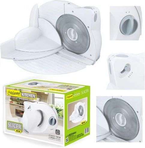 Krajalnica Maestro o mocy 150W jest wyposażona w trzy prędkości krojenia, co pozwala na dopasowanie szybkości do rodzaju krojonego produktu. Regulacja grubości krojenia od 0 do 15 mm pozwala na uzyskanie odpowiedniej grubości krojonego chleba czy wędliny. Ostrze ze stali nierdzewnej o średnicy 170 mm zapewnia precyzyjne krojenie. W komplecie znajduje się dociskacz, który ułatwia stabilne i bezpieczne krojenie. Obudowa krajalnicy wykonana jest z tworzywa sztucznego, co czyni ją lekką i łatwą w utrzymaniu czystości. Wygodne krojenie różnych produktów, takich jak chleb, kiełbasy, sery itp. 3 prędkości Regulowana grubość cięcia do 15 mm Średnica ostrza ze stali nierdzewnej 170 mm Popychacz żywności z zabezpieczeniem 220-240V, ~ 50Hz, 150W