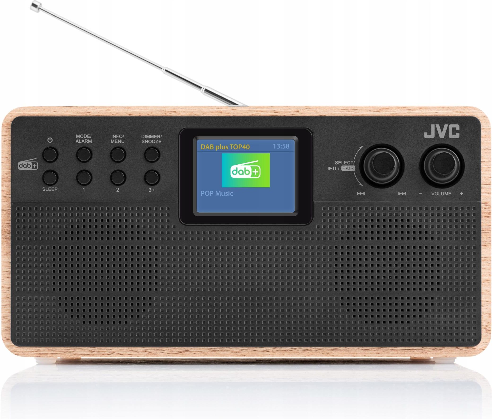 JVC RA-E731B: elegancki odbiornik DAB+ z Bluetooth i funkcją alarmu Elegancja i funkcjonalność w jednym Odbiornik radiowy DAB+ JVC RA-E731B to nowoczesne urządzenie, które łączy elegancki design z funkcjonalnością. Wyposażony w wyraźny, kolorowy wyświetlacz o przekątnej 2,4 cala, zapewnia doskonałą czytelność i estetykę. Tuner cyfrowy obsługuje zarówno pasmo DAB+, jak i FM, umożliwiając zapisanie do 30 ulubionych stacji radiowych w pamięci. Jedną z wyróżniających się funkcji jest Najlepsza melodia, która automatycznie dostosowuje stacje DAB+ i FM do jednej listy, wybierając stację o lepszym sygnale, co sprawia, że zmiana stacji między pasmami staje się szybka i wygodna. Dzięki funkcji Bluetooth oraz wejściu AUX, urządzenie daje możliwość odtwarzania muzyki z innych źródeł niż radio. Dodatkowo, wyjście słuchawkowe umożliwia słuchanie muzyki bez zakłóceń. Odbiornik radiowy z trybem drzemki i opóźnionym wyłączeniem Odbiornik posiada także dwie niezależne funkcje alarmu, które można ustawić na różne godziny z wyborem dźwięku alarmu, radia DAB+ lub FM. Z kolei funkcje SNOOZE (drzemka) oraz SLEEP (opóźnione wyłączenie) dbają o komfort użytkownika, umożliwiając wygodne korzystanie z urządzenia w trybie uśpienia. Zasilany zarówno przez dołączony adapter, jak i cztery baterie AA (brak w zestawie), odbiornik DAB JVC RA-E731B to doskonały wybór dla osób szukających niezawodnego i wszechstronnego odbiornika radiowego.