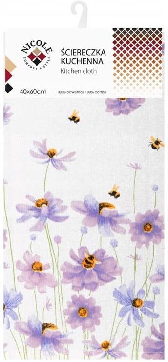 Ścierka bawełniana NICOLE 40x60 cm fioletowe kwiaty i pszczółki Kcynia