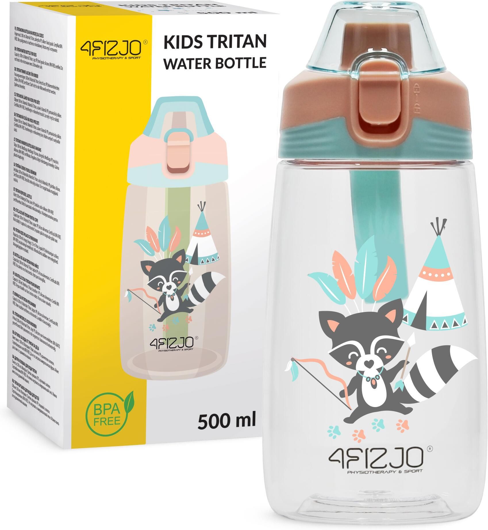BUTELKA NA WODĘ BIDON DLA DZIECKA NAPÓJ DO SZKOŁY SPORTOWA TRITAN 500 ML Butelka na wodę dla dziecka 4FIZJO 500 ml Lekka, szczelna, kolorowa – idealna do szkoły, na wycieczkę czy trening. Tobie pozwoli kontrolować ilości wody wypijanej przez twoją pociechę, a twoje dziecko zachęci do picia. Idealne połączenie, prawda? Potrzebujesz dodatkowych powodów, by wybrać butelkę na wodę dla dziecka 4FIZJO? Co powiesz na praktyczne zabezpieczenie pokrywki i wygodny ustnik dla maksymalnego komfortu? Materiał, z którego wykonaliśmy butelkę, też nie jest przypadkowy. To tritan – lekkie, odporne i trwałe tworzywo nowej generacji. Na zakończenie mamy kolorowe wzory z ulubionymi zwierzątkami dzieci. W przypadku tej butelki każdy szczegół został dobrze przemyślany. Butelka do szkoły dla dziecka 4FIZJO Butelka na wodę dla dziecka idealnie sprawdzi się do przedszkola, do szkoły, na trening czy na wycieczkę. Sprawdź jej parametry, by wybrać produkt, który spełnia twoje wymagania. Parametry Materiał: tritan, silikon, PP Pojemność: 500 ml Kolor: wielokolorowy Wysokość: 17 cm Średnica podstawy: 7 cm Waga: 125 g Bidon dla dziecka na wodę z tritanu – odporny, lekki, niezawodny Tworzywo, z którego wykonano butelkę, do złudzenia przypomina szkło, jednak nie daj się zwieść pozorom. Tritan to tworzywo sztuczne nowej generacji – w swoim składzie nie zawiera substancji szkodliwych, które mogą przenikać do napojów. Ponadto jest on zdecydowanie lżejszy niż szkło i bardziej odporny na zniszczenia i różnice temperatur. Tritanowa butelka do szkoły nie pęknie, nawet gdy napój, który się w niej znajduje, zamarznie! Wysoka temperatura też nie będzie jej straszna. To wszystko sprawia, że butelka tritanowa na wodę 4FIZJO szybko stanie się najlepszym towarzyszem twojego dziecka każdego dnia. Najważniejsze cechy bidonu dla dziecka 4FIZJO Wytrzymałość – odporność na zniszczenia to cecha szczególnie ważna w przypadku dzieci, bidon 4FIZJO jest odporny na przeróżne dziecięce pomysły. Szczelność – pokrywka z dodatkowym zabezpieczeniem zapobiega przeciekaniu, dzięki czemu bidon dla dziecka 4FIZJO można śmiało włożyć do plecaka. Lekkość – sama butelka do picia waży tylko 125 g, dzięki czemu po wypiciu wody nie będzie dodatkowo obciążać plecaka. Nie zawiera BPA – do produkcji bidonu dla dziecka 4FIZJO nie wykorzystano szkodliwego bisfenolu A. Jest to związek chemiczny, który może przedostawać się do jedzenia i picia. Jak obliczyć, ile wody powinno wypijać Twoje dziecko? Zapotrzebowanie na dzienną ilość płynów u dzieci zależy od wieku, masy ciała, pory roku oraz aktywności fizycznej. Można przyjąć, że dzieci, które ważą do 10 kg, potrzebują ok. 100 ml na każdy kilogram swojego ciała. Dzieci ważące 10 kg powinny wypijać ok. 1000 ml, a każdy kilogram więcej wymaga dodatkowych 50 ml. Zapotrzebowanie to wzrasta latem, a także w trakcie uprawiania sportu. Zastanawiasz się, jak możesz kontrolować tę ilość? Może pomóc Ci w tym bidon dla dziecka 4FIZJO. W przypadku dziecka ważącego ok. 10 kg pojemność 500 ml pozwoli Ci upewnić się, że w ciągu dnia w szkole Twoje dziecko wypiło połowę swojego zapotrzebowania.