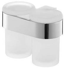 Kubek podwójny z uchwytem BISK FUTURA – Chrom / Mrożone szkło Elegancki i funkcjonalny – kubek podwójny z kolekcji FUTURA to praktyczny dodatek do każdej łazienki. Wykonany ze stopu ZnAl pokrytego chromem oraz mrożonego szkła, umożliwia wygodne przechowywanie szczoteczek i innych akcesoriów łazienkowych, łącząc trwałość z nowoczesnym designem. Najważniejsze zalety Stylowy wygląd – chromowane wykończenie i mrożone szkło nadają łazience elegancji i nowoczesnego charakteru. Trwała konstrukcja – odporny na wilgoć i codzienne użytkowanie. Łatwy montaż – mocowany stabilnie do ściany za pomocą śrub. Specyfikacja techniczna Kolor: Chrom / Mrożone szkło Materiał: ZnAl / Szkło hartowane Montaż: Śruby