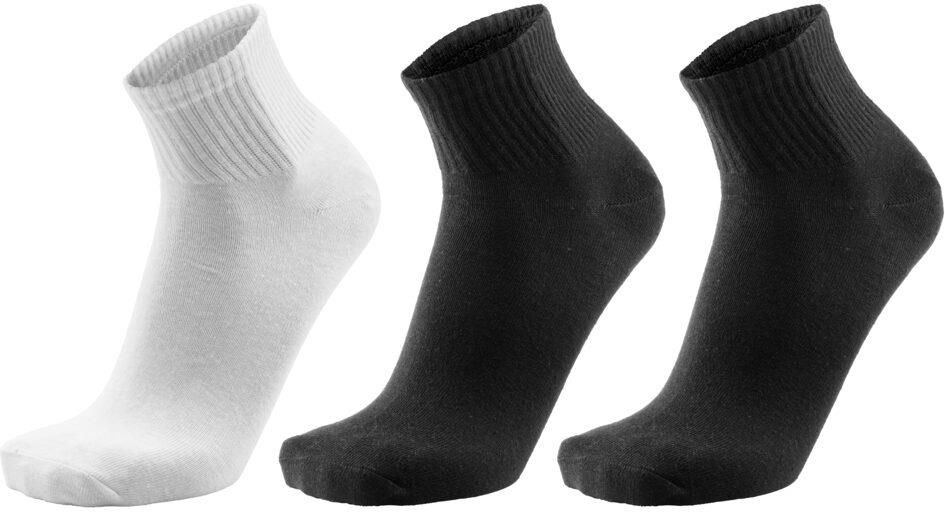 Miękkie skarpety z cholewką za kostkę. Wygodne skarpety marki Bluewear sprzedawane są w trójpaku w kolorach czarnym i białym. Cholewka skarpet kończy się tuż za kostką. Wykonane z miękkiej mieszanki bawełny. Haft z informacją o rozmiarze Na spodzie skarpet jest wyszyte niewielkie oznaczenie rozmiaru, dzięki któremu po praniu łatwo je połączyć w pary.