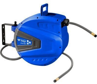 Automatyczny bęben na wąż sprężonego powietrza, Ø 10 mm x 15 m Z uchwytem montażowym do sprężonego powietrza i wody Bęben swobodnie obracany o 180° za pomocą mocowania ściennego elastyczny wąż PVC automatyczny powrót z prowadnicą podającą Wiele zapadek na obrót urządzenie blokujące w tym wąż …