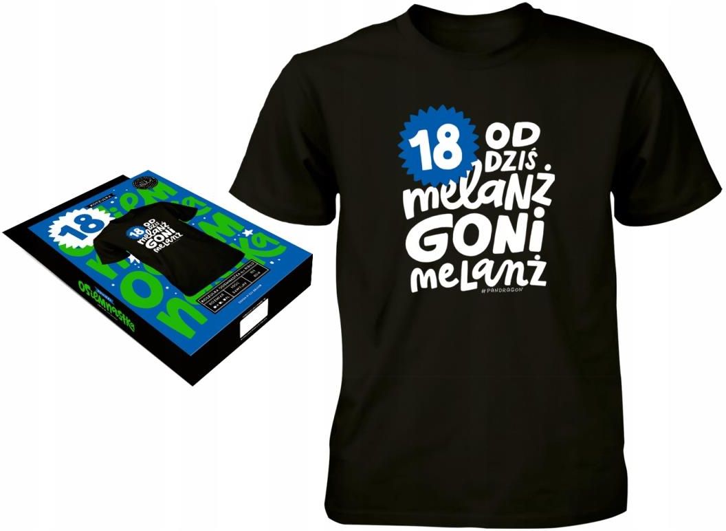 ROZMIAR M! Wystrzałowy pomysł na prezent dla Niego! Na 18 stkę Zabawna koszulka z wysoko gatunkowej bawełny z niebieskim i białym nadrukiem. Koszulka jest zapakowana w estetyczne, kolorowe pudełko. Rozmiar: M Producent: Pan Dragon