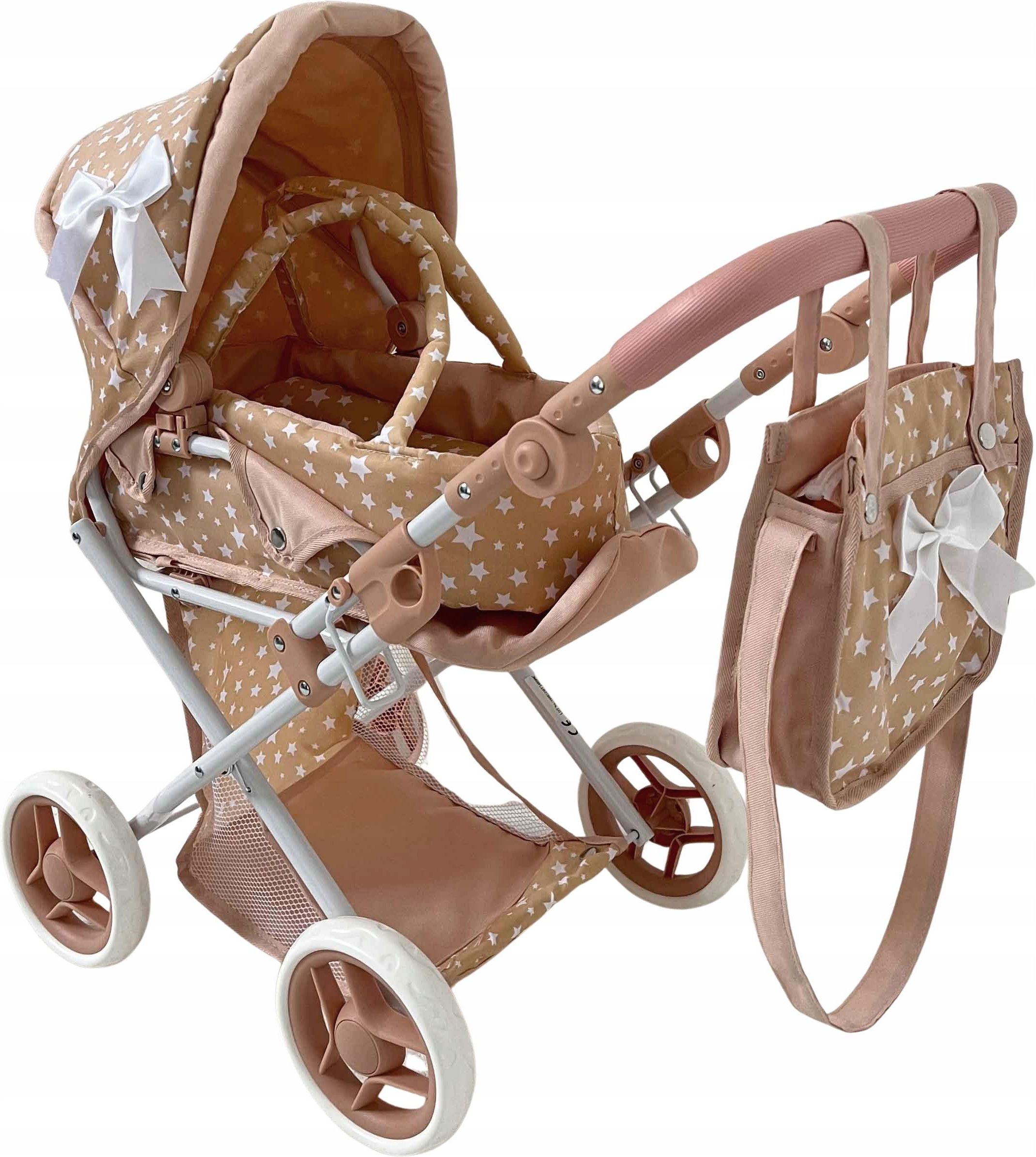 WSPANIAŁY WÓZEK DLA LALEK FUNKCYJNY 3w1 GŁĘBOKI i SPACEROWY +TORBA + POŚCIEL TYLKO MARKA "MARIOTOYS" GWARANTUJE JAKOŚĆ I BEZPIECZEŃSTWO DLA TWOJEGO DZIECKA Wózki MARIOTOYS produkowane są zgodnie z rygorystycznym SYSTEMEM ZARZĄDZANIA JAKOŚCIĄ ISO 9001-2008 Produkcja wózków jest dokładnie kontrolowana od początku aż do jej końca. Każdy wózek oznaczony jest numerem seryjnym co gwarantuje bardzo dobrą jakość wykonania. Marka MARIOTOYS gwarantuje jakość i bezpieczeństwo. ZALETY WÓZECZKA lekki i stabilny ciche nowoczesne wytrzymałe kółeczka nierysujące podłogi z pianki wykonany z rurek aluminiowych rączka regulowana z pianki blokada przed samoczynnym złożeniem się materiał na zatrzaskach z możliwością zdjęcia i wyprania w pralce w wersji spacerowej pasy dla lalki pojemny koszyczek na akcesoria nosidełko z wygodnymi uszkami do przenoszenia lalki pościel / poduszka + kołderka torebka na drobiazgi podnóżek w wersji spacerowej możliwość składania na płasko do kartonika piękne żywe kolory zachwycą każdą dziewczynkę Nasz wózeczek MARIOTOYS posiada szybką i łatwą możliwość przeróbki wersji z głębokiej na wersję sportową. Bez konieczności zabierania ze sobą dodatkowych akcesoriów. WÓZEK JEST WYGODNY W EKLSPLOATOWANIU JAK I W PRZECHOWYWANIU PONIEWAŻ WÓZECZEK ŁATWO SIĘ SKŁADA Wymiary wózeczka wys. wózka 70 cm wys. do siedziska 32 cm dł. 74 cm, szer. 36 cm, rozstaw osi 30 cm, wys. rączki od 32 do 64 cm, szerokość gondoli 21 cm, długość gondoli 48 cm, średnica kół 15 cm, Nosidełko: 40cm x 20cm x 10 cm.