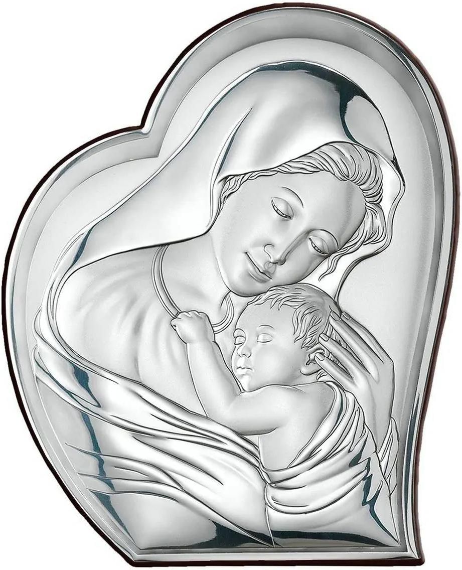 Nowoczesny obraz Matki Boskiej z dzieciątkiem Obraz Matka Boska z dzieciątkiem jest wspaniałą propozycją prezentu na wiele okazji. Idealnie sprawdzi się m.in. na narodziny dziecka, chrzest czy ślub. Wizerunek Matki Bożej tulącej Jezusa ukazuje to co najcudowniejsze w byciu matką, czyli miłość, bliskość i oddanie. Prezentowany obraz Maryi z Jezusem w kształcie serca został zaprojektowany i wyprodukowany przez włoską firmę Valenti. Oferowany przez nas srebrny obraz Matki Boskiej to wyjątkowe połączenie ciemnego, brązowego drewienka ze srebrną plakietką. Dokładne odwzorowanie szczegółów, na srebrnym emblemacie, takich jak załamanie materiału, czy mimika twarzy postaci wprawi w zachwyt każdego szczęśliwego nabywcę lub obdarowanego. Obrazek Matki Boskiej jest matowy z pięknie lśniącymi elementami, dzięki czemu wytłoczone postacie nabierają eleganckiego wyglądu, a obraz otrzymuje niesamowitą kompozycję, co daje spektakularny i wyjątkowy efekt wizualny. Obraz Maryi z tyłu wykonany jest z wysokiej jakości ciemnego drewienka.Srebrny obraz z Matką Boską, ma dziurkę z tyłu i jest idealny do zawieszenia, a także jest świetny do postawienia dzięki specjalnej nóżce. To daje wiele możliwości na wyeksponowanie obrazka. Świetnie sprawdzi się on zarówno jako prezent ślubny i komunijny lub na chrzest, jak i wyraz podziękowania dla rodziców lub rodziców chrzestnych czy dla mamy. Jego uniwersalność sprawia, że będzie mógł także stanowić element dekoracji w kościele lub na plebanii lub zostać wykorzystany jako obraz Maryi do salonu lub sypialni. Srebrny obrazek to innowacyjna technologia MIRO-SILVER Obrazek wykonany jest z innowacyjnego metalu o nazwie MIRO-SILVER, pokrytego warstwą czystego srebra 999.95. Metal ten jest opatentowany i wyróżnia się wyjątkowym blaskiem oraz odpornością na uszkodzenia mechaniczne i śniedzenie. Zastosowana technologia umożliwia bardzo łatwe czyszczenie obrazka. Wystarczy użyć miękkiej ściereczki bez żadnych środków szorujących. Bezwzględnie zakazane są wszelkie ściereczki do czyszczenia srebra lub detergenty do srebra, gdyż mogą naruszyć warstwę zabezpieczającą posrebrzany emblemat. Cechy obrazka Materiał: metal posrebrzany Miro-Silver, pokryty warstwą czystego srebra 999,95. Wykończenie: połysk, mat. Warianty: obrazek występuje w kilku rozmiarach. Dostępne rozmiary wraz z cenami i dostępnością znajdziesz powyżej. Wymiary całkowite: ok. 8,8 x 10,7 cm, ok. 12,1 x 14,6 cm, ok. 16,2 x 19,5 cm, ok. 21,5 x 26 cm, ok. 34 x 42,5 cm. Orientacja: pionowa Mocowanie: nóżka z tyłu do postawienia i otwór do powieszenia. Tył: z ciemnego drewienka. Idealnie pasuje na: chrzest, komunię, jako podziękowania, ślub, rocznicę, nowy dom, święcenia, narodziny dziecka. Doskonały prezent dla: dziewczynki, chłopca, nowożeńców, pary młodej, rodziców, chrzestnych, dziadków, bliskiej osoby, księdza, mamy. Grawerowanie: do wyboru bezpośrednio z tyłu na drewienku lub na płytce do samodzielnego przyklejenia. O szczegółach grawerowania przeczytasz na dedykowanych stronach lub poniżej. Obrazek z grawerem to wyjątkowa pamiątka ślubu i nie tylko. Obraz Matki Boskiej z dzieciątkiem uświetnić można dodając piękną i spersonalizowaną dedykację. Indywidualna dedykacja dopasowana do uroczystości sprawi, że upominek nabierze wyjątkowego charakteru. Dobrane życzenia lub modlitwa sprawią, że obraz z Matką Boską będzie doskonałym prezentem na narodziny, chrzest czy komunię lub jako podziękowania. Na życzenie wykonamy dedykację na metalowej płytce do samodzielnego przyklejenia lub bezpośrednio na odwrocie obrazka. Grawerunek tworzymy techniką laserową. Grawerunek techniką laserową to trwały i eleganckisposób personalizacji na wielu materiałach. Zastosowana technologia sprawia, że dedykacja pozostanie trwała na długie lata. Do wyboru masz dużo możliwości personalizacji. Dysponujemy kilkoma rodzajami czcionek i ponad kilkunastoma wzorami graficznymi. Dzięki nim stworzysz swoją indywidualną i wyjątkową dedykację, która ucieszy obdarowaną osobę. Zaufaj naszemu doświadczeniu. Precyzyjnie dobierzemy rozmiar czcionki i ułożenie przesłanego tekstu przez co grawerunek będzie wyglądał rewelacyjnie. Możesz także przesłać nam swoją indywidualną treść dedykacji i grafikę za pomocą e-mail lub udostępnionego formularza. Wykonamy dowolne życzenia, słowa modlitwy, grafikę itp. Zachęcamy do zapoznania się ze szczegółami naszej usługi grawerowania laserowego. Liczne opcje personalizacji: czcionki, znaki graficzne, gotowe teksty znajdziesz na dedykowanych stronach w menu lub poniżej. Kupując srebrny obrazek Matki Boskiej otrzymujesz Piękny i nowoczesny obrazek Matka Boska z Jezusem. Indywidualny grawerunek gratis . Drewnianą nóżkę do postawienia. Opakowanie tekturowe od producenta. Certyfikat autentyczności producenta.