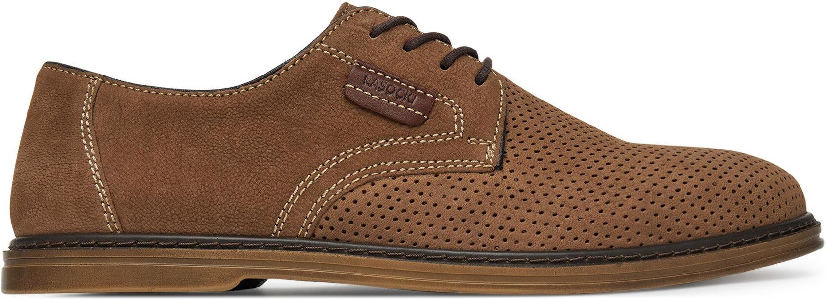 Ciemnobeżowe półbuty męskie od marki Lasocki to doskonały wybór dla każdego mężczyzny, który ceni sobie elegancję i wygodę. Wykonane ze skóry, te buty łączą w sobie klasyczny styl z nowoczesnym podejściem do mody. Okrągły nosek nadaje im uniwersalnego charakteru, dzięki czemu doskonale sprawdzą się zarówno w formalnych, jak i casualowych stylizacjach. Daj się przekonać do półbutów Lasocki i ciesz się komfortem oraz nienagannym wyglądem każdego dnia! Lasocki to tradycja, najwyższa jakość i funkcjonalność. To jedna z najpopularniejszych polskich marek, której początki sięgają 1954 roku. Znana jest głównie z produkcji skórzanego obuwia i wyjątkowych akcesoriów. Produkty marki Lasocki reprezentują ponadczasową elegancję, ale też najnowsze trendy. Wieloletnie doświadczenie oraz wykorzystanie wysokogatunkowych materiałów – jak np. skórzane cholewki i wyściółki – gwarantują najwyższy komfort noszenia przez wiele sezonów! Podaruj swojej rodzinie wygodę na lata.
