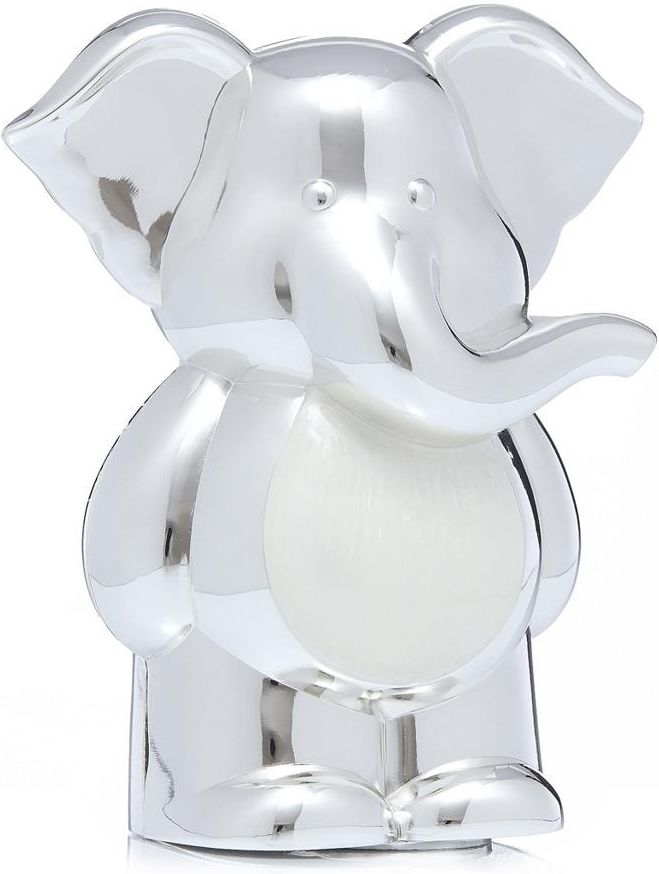 Błyszcząca skarbonka słonik z trąbą do góry na szczęście i na pierwsze oszczędności. Wykonana jest z wysokiej jakości stali pokrytej powłoką galwaniczną w kolorze srebrnym.Od spodu znajduje się zatyczka umożliwiająca wyjęcie zawartości. Produkt o wymiarach 110x136x42 zapakowany w oryginale …