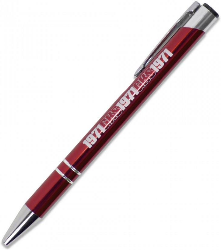 Długopis GKS Tychy Stylowy chromowany długopis automatyczny z napisem 1971 GKS Dostępny w trzech wiersjach kolorystycznych, czarny, czerwony, zielony