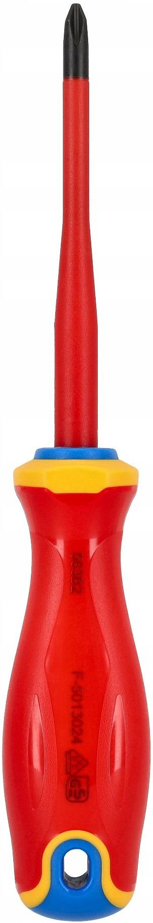 WKRĘTAK ŚRUBOKRĘT IZOLOWANY DLA ELEKTRYKA VDE PHILLIPS PH2x100 1000V SLIM ✅ Jakość i bezpieczeństwo potwierdzone certyfikatem VDE GS oraz normą IEC 60900, ✅ Groty wkrętaków wykonane ze stali S2 - magnetyczne, ✅ 3-materiałowy ergonomiczny, antypoślizgowy uchwyt, ✅ Cześć robocza wkrętaka z izolacją typu „SLIM" zapewniająca możliwość pracy w trudno dostępnych miejscach.