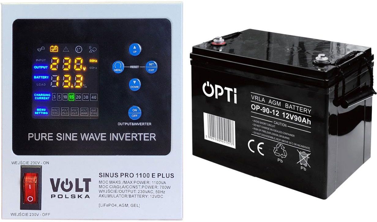 Zestaw: zasilacz Volt Sinus Pro 1100E 700VA/1100W + akumulator Volt OPTI VRLA AGM 12V 90Ah Kędzierzyn-Koźle
