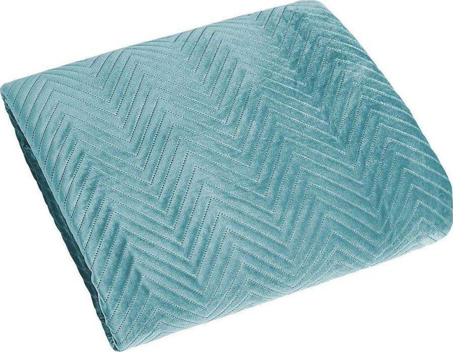 Narzuta dekoracyjna SOFIA 170x210 miętowa Eurofirany Ekskluzywna narzuta na łóżko SOFIA z miękkiego i przyjemnego w dotyku welwetu pikowanego w dużą, gęstą jodełką. Do pikowania wykorzystano metodę bezszwową hotpress. Dzięki użyciu welwetu wnętrzu nadajemy elegancji, szlachetności, a nawet …