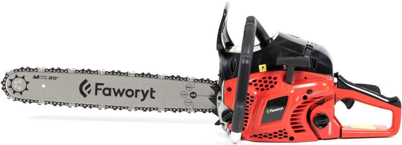 PILARKA SPALINOWA ŁAŃCUCHOWA FAWORYT RG5620-B5 Pilarka spalinowa Faworyt RG5620-B5 Przycinanie drzewek w ogródku, przygotowanie drewna na opał, a także wiele innych ogrodowych prac wymaga zastosowania narzędzia, jakim jest pilarka. Jeśli chcesz mieć pewność, że wybierasz model, który sprawdzi się podczas wszystkich tych prac i Cię nie zawiedzie, polecamy pilarkę spalinową Faworyt RG5620-B5. SPECYFIKACJA Moc znamionowa [kW]: 2.3 Rodzaj ssania: pompka Emisja hałasu [dBA]: 114 Model: RY1E46F-2 Moc silnika [KM]: 3.1 Moment obrotowy [Nm]: 2.7 Pojemność silnika [cm3]: 56 Pojemność zbiornika [L]: 0.55 Rodzaj rozrusznika: ręczny Dekompresator: NIE Proporcja mieszanki paliwo/olej: 1:40 Waga netto [kg]: 6.9 Waga brutto [kg]: 8 Prowadnica [cm]: 50 Podziałka łańcucha: 0,325" Grubość łańcucha [mm]: 1,5 Ilość ogniw: 76 Marka prowadnicy i łańcucha: Kangxin Mechanizm szybkiego napinania łańcucha: NIE System antywibracyjny: TAK Automatyczne smarowanie łańcucha: TAK Hamulec bezpieczeństwa: TAK Pojemność zbiornika oleju [ml]: 260 Wskaźnik poziomu oleju: NIE Waga bez prowadnicy i łańcucha [kg]: 5.1 Solidne urządzenie z napędem spalinowym do Twojego ogrodu Pilarka spalinowa Faworyt RG5620-B5 to model pracujący na silniku 2-suwowym o pojemności 56 cm3. Jej moc wynosi 3,1 KM. Inne parametry, na które koniecznie powinieneś zwrócić uwagę przed zakupem, to łańcuch 0,325 1,5 mm 76E oraz prowadnica o długości 50 cm. Hamulec bezpieczeństwa oraz osłony chroniące użytkownika przed elementem tnącym znacznie podwyższają bezpieczeństwo podczas pracy. Pilarka spalinowa Faworyt RG5620-B5 ma także system automatycznego smarowania łańcucha oraz wskaźnik zbiornika paliwa. System antywibracyjny ma z kolei za zadanie tłumić wibracje i zmniejszać dyskomfort związany z długotrwałym wykorzystaniem urządzenia. Pilarka spalinowa Faworyt RG5620-B5 jest modelem o stosunkowo dużej mocy, lecz bardzo poręcznym i funkcjonalnym podczas prac różnego rodzaju. Zawartość opakowania korpus pilarki RG5620-B5 prowadnica łańcuch osłona prowadnicy osłona boczna prowadnicy z hamulcem ostroga ograniczająca śruba imbusowa do montażu ostrogi – 2 szt. komplet narzędzi: klucz uniwersalny do świec, pilnik okrągły, klucz imbusowy, śrubokręt pojemnik na mieszankę instrukcja obsługi karta gwarancyjna