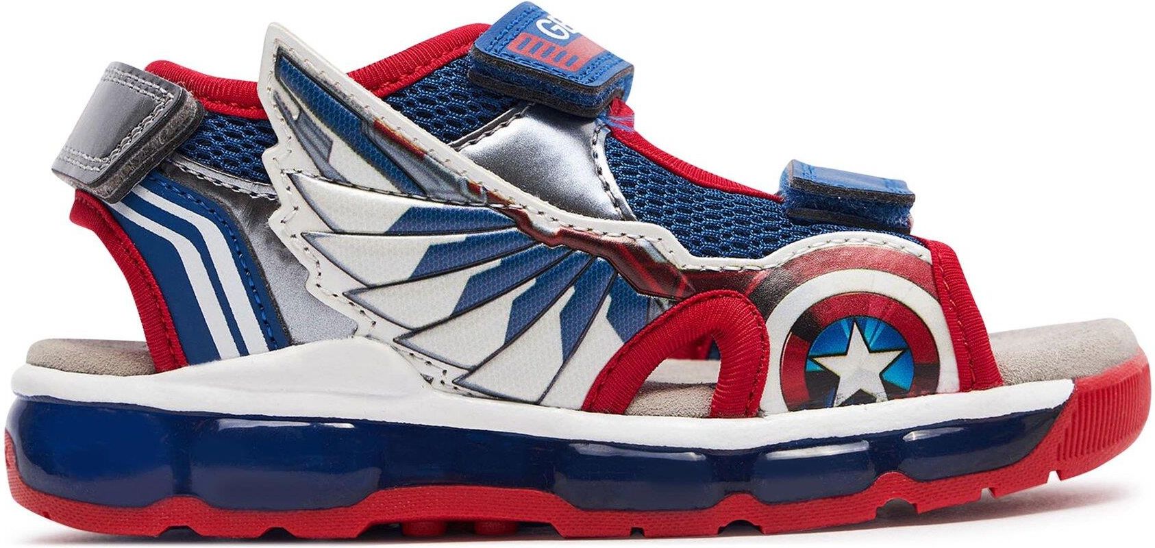 Android to sandały dla chłopców, które wyróżniają się migającymi diodami w podeszwie i trójwymiarowym detalem na cholewce. Wykonane z siateczki i materiału imitującego skórę, zapewniają wygodę i trwałość. Jako owoc współpracy Geox i Marvel, te sandały z pewnością dostarczą mnóstwo radości małym odkrywcom, którzy uwielbiają zabawę w towarzystwie swoich ulubionych superbohaterów z Avengers.