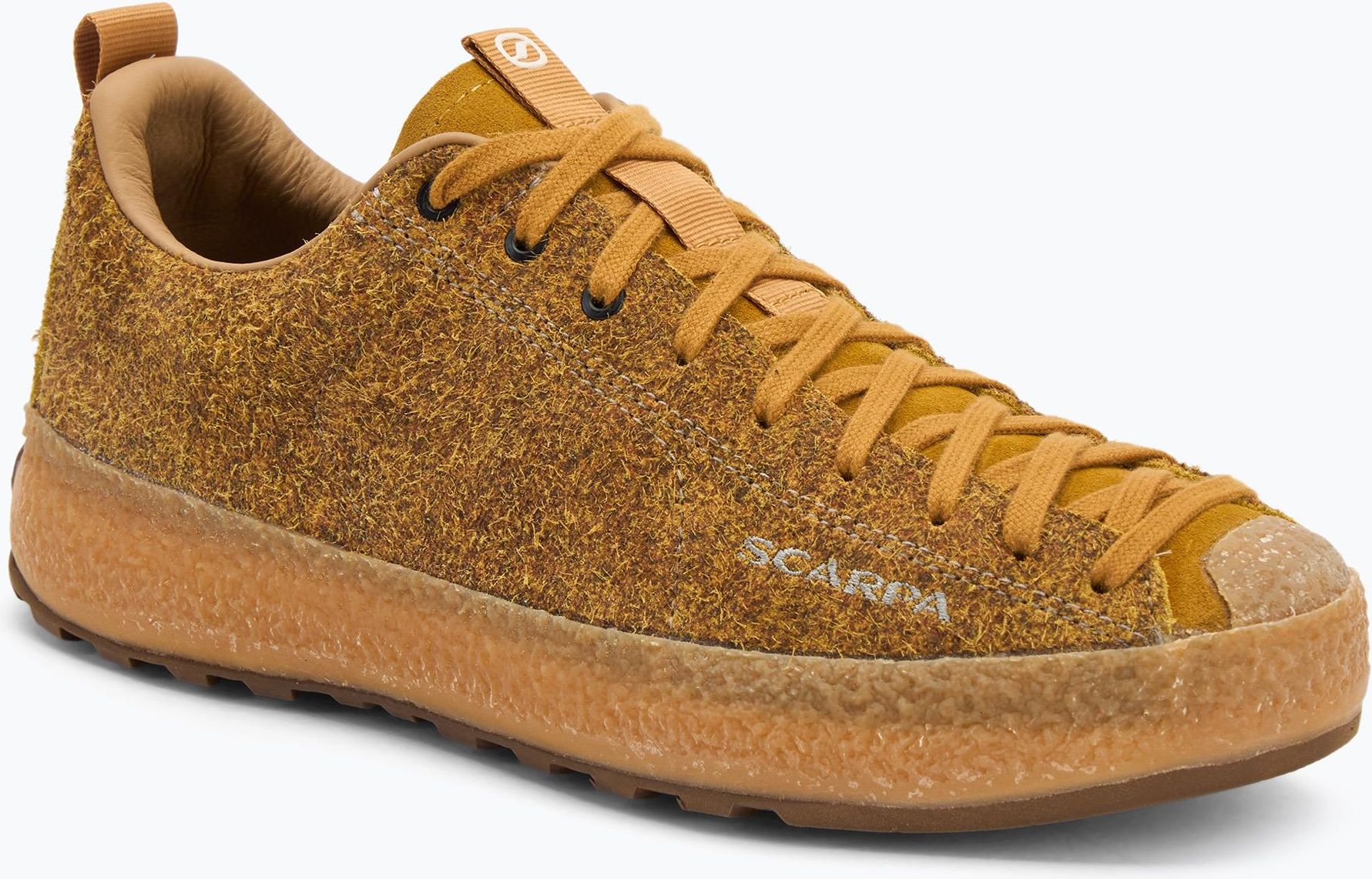 Buty męskie SCARPA Mojito Wrap F mustard łączą w sobie outdoorową funkcjonalność z nowoczesnymi rozwiązaniami technicznymi, tworząc propozycję dla wymagających użytkowników stawiających na trekking i sportowy styl. Wykorzystanie recyklingowanych materiałów w konstrukcji tego modelu podkreśla jego ekologiczny charakter, a skórzana cholewka oraz gumowa podeszwa gwarantują wysoką wytrzymałość i przyczepność podczas codziennych aktywności. Zaawansowane technologie ActiveFit i PRESA® W modelu SCARPA Mojito Wrap F zastosowano technologię ActiveFit, która optymalizuje anatomiczne dopasowanie buta do męskiej stopy, zapewniając komfort nawet podczas intensywnego marszu w terenie. Za przyczepność odpowiada podeszwa zewnętrzna wykonana z gumy, oparta na technologii PRESA®, co przekłada się na skuteczność antypoślizgową oraz pewność kroków na zróżnicowanych nawierzchniach. Połączenie tych rozwiązań sprawia, że buty doskonale sprawdzają się zarówno podczas trekkingu, jak i w miejskiej dżungli. Skórzana cholewka i wzmocnienia Cholewka wykonana ze skóry zapewnia doskonałą oddychalność, a jednocześnie charakteryzuje się odpornością na uszkodzenia mechaniczne i trwałością w wymagających warunkach. Wzmocnienia przy palcach zwiększają bezpieczeństwo i chronią stopę podczas kontaktu z kamieniami czy innymi przeszkodami na szlaku. Niska wysokość cholewki oraz tradycyjne sznurowanie gwarantują precyzyjne dopasowanie do indywidualnych potrzeb użytkownika. Ekologiczne materiały i komfort użytkowania W konstrukcji butów wykorzystano materiały pochodzące z recyklingu, co odpowiada na potrzeby osób świadomych ekologicznie. Model zachowuje przy tym pełną oddychalność, a zastosowane technologie pozwalają utrzymać komfort nawet przy długotrwałym użytkowaniu w cieplejszym klimacie. Otok przy palcach, solidne wykonanie i anatomiczne dopasowanie odpowiadają za wysoką funkcjonalność zarówno na trasach trekkingowych, jak i w codziennym użytkowaniu. Buty męskie SCARPA Mojito Wrap F mustard - cechy: Cholewka wykonana z wysokiej jakości skóry zapewniającej oddychalność; Podeszwa zewnętrzna oparta na gumie w technologii PRESA®; Wzmocnienia przy palcach zwiększające ochronę stopy; Konstrukcja z recyklingowanych materiałów przyjazna środowisku; Przyczepność i właściwości antypoślizgowe na zróżnicowanym terenie; Model przeznaczony do trekkingu i codziennego użytkowania; Otok przy palcach zwiększający odporność na uszkodzenia mechaniczne; Model zapewniający dobre trzymanie stopy podczas aktywności.