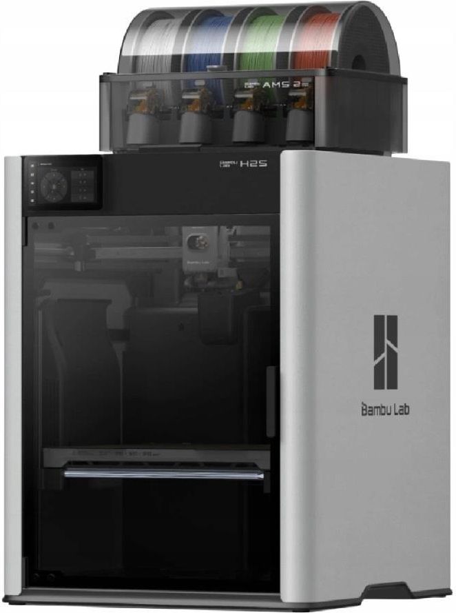 DRUKARKA 3D BAMBU LAB H2S COMBO NOWOŚĆ 2025 ROK DRUKARKA 3D BAMBU LAB H2S COMBO Bambu Lab H2S Combo to zaawansowana drukarka 3D FDMnowej generacji, zaprojektowana do szybkiego i precyzyjnego druku przemysłowego. W zestawie znajduje się system AMS 2 Pro, który umożliwia pracę wielomateriałową i wielokolorową bez konieczności ręcznej wymiany szpuli. Urządzenie oferuje pole robocze o wymiarach 340 x 320 x 340 mm, aktywne ogrzewanie komory do 65°C oraz prędkość druku do 1000 mm/s. Konstrukcja wykorzystuje wzmocniony ekstruder z silnikiem serwo oraz Vision Encoder zapewniający dokładność ruchu poniżej 50 µm, a oprogramowanie Bambu Studio obsługuje język polski. W ZESTAWIE ✅ Drukarka 3D Bambu Lab H2S ✅ AMS 2 Pro ✅ Płyta robocza PEI teksturowana ✅ Uchwyt na szpulę filamentu ✅ Zestaw akcesoriów ✅ Klucz bezpieczeństwa Bambu Lab H2S Combo to profesjonalna drukarka 3D FDM z dołączonym systemem AMS 2 Pro do automatycznej obsługi wielu filamentów. Pole robocze o wymiarach 340 x 320 x 340 mm zapewnia nawet o 120% większą objętość niż w modelu X1C. Głowica do 350°C, stół do 120°C i aktywnie grzana komora do 65°C umożliwiają stabilny druk z materiałów technicznych (np. PPS, PA-CF, PC). Vision Encoder gwarantuje dokładność poniżej 50 µm, a kamery Full HD i rozbudowane czujniki pozwalają na pełny nadzór procesu. Oprogramowanie Bambu Studio (slicer) oferuje pełne wsparcie dla języka polskiego co znacząco ułatwia obsługę urządzenia oraz przygotowanie modeli do druku. Wzmocniony ekstruder ✔️ Ekstruder Bambu Lab H2S Combo wykorzystuje silnik serwo, który zwiększa siłę wytłaczania o 67% w porównaniu do tradycyjnych napędów, utrzymując stabilny przepływ przy wysokich prędkościach druku. Ułatwia to pracę z lepkimi i wzmacnianymi filamentami (CF/GF), redukując ryzyko podekstruzji. Napęd obsługuje pełną ścieżkę filamentu, co zwiększa precyzję podawania materiału. Precyzyjny system Vision Encoder ✔️ Dzięki systemowi Vision Encoder drukarka osiąga precyzję ruchu poniżej 50 μm. Kamera monitorująca pozycję głowicy kompensuje dryft mechaniczny, co zapewnia niezmienną dokładność nawet podczas długich wydruków z dużą prędkością. Układ opiera się na enkoderze optycznym o rozdzielczości 5 μm, gwarantując wysoką powtarzalność i gładkość powierzchni. Sztuczna inteligencja i monitoring w czasie rzeczywistym ✔️ Urządzenie wykorzystuje 23 czujniki oraz 3 kamery do monitoringu procesu druku. Kamery Live View, Toolhead i Bird’s Eye (opcjonalna) rejestrują parametry pracy, a AI wykrywa spaghetti, zatkania oraz brak filamentu. Dzięki temu drukarka reaguje na problemy w czasie rzeczywistym. System obejmuje również detekcję splątań i odometr filamentu przy współpracy z systemem AMS 2 Pro. Aktywne ogrzewanie komory ✔️ Zamknięta komora robocza z aktywnym ogrzewaniem do 65°C stabilizuje warunki druku dla materiałów technicznych. Cyrkulacja gorącego powietrza minimalizuje wypaczenia i poprawia adhezję warstw. System działa w zamkniętej pętli i współpracuje z filtracją, podnosząc bezpieczeństwo oraz stabilność procesu. System filtracji oraz zaawansowane chłodzenie ✔️ Zintegrowany system filtracyjny obejmuje prefiltr G3, HEPA H12 oraz węgiel aktywny i filtr z łupin kokosa. Chroni przed cząstkami PM i VOC, a zamknięty obieg powietrza utrzymuje czystość środowiska pracy. Wysoka skuteczność filtracji wspiera druk z ABS i PC. Oddzielne wentylatory z zamkniętą pętlą kontroli obsługują hotend, komorę i elektronikę, stabilizując temperatury podczas długich cykli. Dodatkowo, pomocnicze chłodzenie częściowe poprawia jakość mostów i przewieszeń, szczególnie przy PLA i PETG. System AMS 2 Pro w zestawie ✔️ AMS 2 Pro to automatyczny system podawania filamentu, który umożliwia druk z nawet 4 materiałów bez koniczności ręcznej zmiany szpuli. Precyzyjne czujniki monitorują przepływ i stan filamentu, a wbudowany nóż dba o czyste przełączenia. W porównaniu do poprzedniej generacji AMS, wersja Pro oferuje aktywny system suszenia z funkcją automatycznego obrotu szpul, zwiększoną prędkość podawania filamentu oraz ceramiczne prowadnice o wysokiej twardości. Obudowa umożliwiająca beznarzędziowy dostęp do wnętrza urządzenia ułatwia konserwację i usuwanie ewentualnych problemów z filamentem. Pozostałe cechy drukarki ✔️ Neural Processing Unit (NPU): procesor AI 2 TOPS wspiera analizę obrazu i diagnostykę w czasie rzeczywistym ✔️ Układy obliczeniowe: czterordzeniowy ARM A7 (1,5 GHz) dla interfejsu i łączności; mikrokontrolery Cortex-M4/M7 dla ruchu i czujników ✔️ System bezpieczeństwa: czujnik drzwi, detekcja płomienia, przycisk awaryjny, wznowienie druku po zaniku zasilania ✔️ Łączność: WiFi 2,4 GHz / 5 GHz i tryb offline; integracja z Bambu Studio i Bambu Handy ✔️ Ekran dotykowy: 5" 720 x 1280 px ułatwiający obsługę i podgląd ✔️ Kompatybilność oprogramowania: Windows, macOS, Linux; wsparcie G-code (Bambu Studio, Super Slicer, PrusaSlicer, Cura - część funkcji może być ograniczona) PARAMETRY TECHNICZNE ✔️ Technologia druku: Fused Deposition Modeling (FDM) ✔️ Objętość robocza: 340 x 320 x 340 mm ✔️ Średnica filamentu: 1,75 mm ✔️ Średnica dyszy: 0,4 mm (domyślnie); opcjonalnie: 0,2 / 0,6 / 0,8 mm ✔️ Maks. temp. głowicy: 350°C ✔️ Maks. temp. stołu roboczego: 120°C ✔️ Ogrzewanie komory: Aktywne, do 65°C ✔️ Prędkość ruchu głowicy: Do 1000 mm/s ✔️ Maks. przyspieszenie: Do 20 000 mm/s² ✔️ Maks. przepływ hotendu: Do 40 mm³/s ✔️ Filtracja powietrza: G3 + HEPA H12 + granulat z łupin kokosa ✔️ Materiały obudowy: Aluminium, stal, plastik, szkło ✔️ Obsługiwane filamenty: PLA, PETG, TPU, PVA, BVOH, ABS, ASA, PC, PA, PET, PPS, kompozyty wzmacniane CF/GF ✔️ Typy chłodzenia: Wentylatory z zamkniętą pętlą kontroli (e