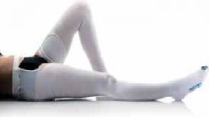 Vena Pure pończochy przeciwzakrzepowe z pasem podtrzymującym Aircast Pończochy VenaPure® to innowacyjny produkt zapobiegający zakrzepicy, zaprojektowany z myślą o skutecznej profilaktyce chorób zakrzepowo-zatorowych. Oto kluczowe informacje na temat ich działania, wskazań i cech: Działanie Pończochy VenaPure® stosują stopniowy ucisk, co przyczynia się do zwiększenia prędkości krwi w żyłach, minimalizując ryzyko gromadzenia się krwi i stanów zastoju. W badaniach Camerota et al. oraz Coleridge-Smith i Scurr stwierdzono, że rozszerzenie żył podczas zabiegów chirurgicznych sprzyja występowaniu zakrzepicy, co potwierdza znaczenie kompresji. Wskazania Profilaktyka żylnej choroby zakrzepowo-zatorowej Zastosowanie w profilaktyce zakrzepicy żył głębokich, szczególnie u pacjentów hospitalizowanych. Cechy Stopniowy ucisk: od 18 mmHg w kostce do 8 mmHg w udzie, co pomaga w ograniczeniu rozszerzania się żył. Otwór kontrolny: zabezpiecza przed punktami nacisku i uszkodzeniami skóry. Wycięcia pod kolanami: zmniejszają nacisk na żyłę podkolanową. Panel zmniejszający ucisk: na wewnętrznej stronie uda, dla lepszej kompresji. Silikonowy pasek: zapewnia dobre trzymanie bez obniżania kompresji. Oznaczenia kolorowe: ułatwiają dobór odpowiedniego rozmiaru. Dodatkowe akcesoria: dołączona taśma pomiarowa. Dobieranie rozmiaru Obwód łydki: zmierz w najszerszym miejscu (punkt B). Długość nogi: zmierz od końca pośladków do podłogi (punkty E-F).