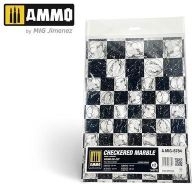 Ammo: White Marble to arkusze odzwierciedlające marmurową posadzkę . Ten produkt sprawdzi się idealnie do odwzorowania efektu podłogi na makietach i podstawkach figurek.