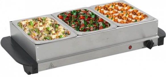 Utrzymaj potrawy odpowiednio ciepłe dzięki naszemu łatwemu w obsłudze bemarowi! Podgrzewacz zawiera 3 naczynia o pojemności 1,5 L z pokrywami, które pozwolą na utrzymanie optymalnej temperatury jedzenia bez ich rozgotowania. Wykonany z łatwej w utrzymaniu w czystości stali nierdzewnej bemar gwarantuje niezwykłą trwałość. Regulowany termostat i kontrolka podgrzewania ułatwiają ustawianie temperatury potraw w zakresie od 45 do 85℃. Co więcej, możesz zmienić bemar w dużą płytę grzewczą poprzez zwykłe zdjęcie naczyń. Dodatkową zaletą produktu są nienagrzewające się uchwyty boczne, ułatwiające przenoszenie. Praktyczny podgrzewacz do potraw sprawdzi się przy wielu okazjach, takich jak przyjęcia świąteczne, wesela, urodziny, imprezy biurowe i wiele innych. Kolor: srebrny Materiał: stal nierdzewna Wymiary: 52,5 x 27 x 14 cm (dł. x szer. x wys.) Pojemność: 3 x 1,5 L Moc: 200 W Zasilanie: 220 - 240 V/50 - 60 Hz Zakres regulacji temperatury: od 45 do 85℃ 3 naczynia ze stali nierdzewnej Z lampką kontrolną zasilania Wbudowane uchwyty Funkcja automatycznego termostatu To urządzenie może być używane przez dzieci w wieku od 8 lat i starsze oraz osoby o ograniczonych zdolnościach fizycznych, sensorycznych lub umysłowych oraz nieposiadające doświadczenia i wiedzy, jeśli znajdują się pod nadzorem lub zostały poinstruowane na temat bezpiecznego korzystania z urządzenia i rozumieją związane z tym zagrożenia. Dzieci nie mogą bawić się urządzeniem. Czyszczenie i konserwacja nie powinny być wykonywane przez dzieci bez nadzoru.