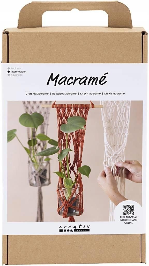 Zawartość: Sznurek do makramy, drewniany wieszak. Dzięki temu zestawowi możesz stworzyć swój własny makramowy wieszak na kwiaty. Zawiera wszystkie potrzebne materiały i instrukcje. Jeśli chcesz nauczyć się, jak zrobić wieszak na kwiaty, używając tylko trzech węzłów makramy, ten zestaw jest dla Ciebie idealny. Zawiera wszystko, czego potrzebujesz, aby zacząć. Zawiąż 12 sznurków makramy wokół drewnianego patyczka - zacznij od podwójnego sznurka i węzła Lark's Head. Wykonaj sam wieszak za pomocą węzła kwadratowego i zbierz wszystko razem za pomocą węzła zbierającego. Rezultatem jest najsłodszy wieszak na kwiaty, który można wykorzystać w dowolnym miejscu w domu. Instrukcje znajdują się na odwrocie pudełka - lub zeskanuj kod QR i postępuj zgodnie z nim online. Domowa dekoracja wieszakowa ma wiele kreatywnych możliwości:. Wypełnij najlepszy zakątek swojego salonu wiszącymi roślinami doniczkowymi Zbierz swoje ulubione kwiaty w słonecznej oranżerii Wykorzystaj wieszak na kwiaty do uprawy ziół i stwórz własny mały ogródek kuchenny w oknie. . w tym instrukcje