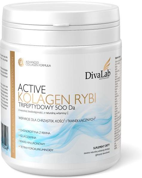 DivaLab Tripeptydy Kolagenu Rybiego 500 Da Z Chondroityną Z Rekina Kwasem Hialuronowym Glukozaminą Oraz Kurkuminą Nowej Generacji 250g Kętrzyn