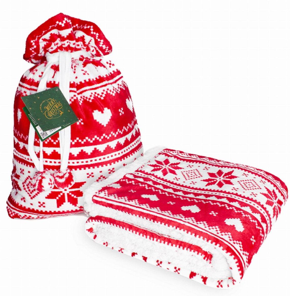 KOC ŚWIĄTECZNY W WORKU IDEALNY NA PREZENT 1 x Koc na prezent w worku 150x200 cm Koc świąteczny o wymiarach 150 × 200 w piękne świątecznewzory, niezwykle miły w dotyku. Koc zapakowany jest w ozdobny worek z tkaniny w takim samym wzorze, zawiązany sznurkiem. Koc dwustronny, przód koca polar, tył koca …