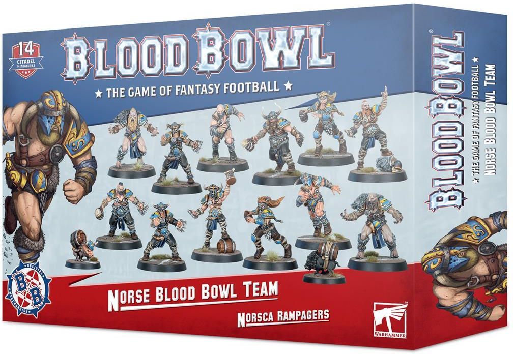 Drużyny nordyckie nie cieszą się niczym więcej niż dobrymi notatkami – iz pewnością w ten sposób radzą sobie najlepiej na boisku! Norskańczycy spędzili całe swoje życie na surowej, mroźnej północy, co czyni ich dość twardą grupą. Ci zahartowani gracze doskonale sprawdzają się w zbliżaniu się do przeciwnika, rzucając blokami na lewo i prawo, gdy bezlitośnie przedzierają się do strefy końcowej – i bez wątpienia do tawerny, która znajduje się poza nią! Oczywiście nie chodzi tylko o spowodowanie uderzenia w środku rusztu; jest też drobna kwestia zdobycia tych wszystkich ważnych przyłożeń. Drużyny nordyckie działają najlepiej, gdy mogą wykorzystać swoją obfitość siły uderzenia, aby wybić dziurę w obronie przeciwnika, pozwalając swoim Walkiriom wykorzystać imponującą prędkość, aby przebiec i odnieść zwycięstwo. Wieloczęściowy zestaw składa się ze 120 plastikowych elementów, za pomocą których można złożyć Norsca Rampagers, nordycki zespół do użytku w grach Blood Bowl. Drużyna składa się z 6 Norse Raider Linemen, 2 Beer Boar, 2 Norse Berserkers, 2 Ulfwereners i 2 Valkyrie. Ponadto w zestawie znajdują się 2 dwustronne monety Blood Bowl, 2 znaczniki tur i przerzutów, 4 kule oraz arkusz transferowy z 292 kalkomaniami. Zasady korzystania z drużyn nordyckich w grach w Blood Bowl można znaleźć w Spike! Dziennik 14. Te miniatury są dostarczane niepomalowane i wymagają montażu – zalecamy użycie Kleju do Tworzyw Sztucznych Citadel i farb Citadel.