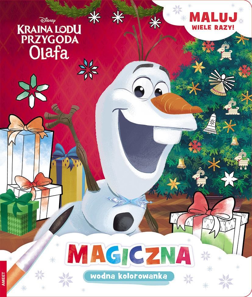 Kraina Lodu. Przygoda Olafa. Magiczna wodna kolorowankaCo słychać zimą w Arendelle? Anna, Elsa, Olaf, Kristoff i Sven przygotowują się do świąt. Odkryj ich sekrety dzięki Magicznej wodnej kolorowance - zaskakującej zabawie, do której potrzebujesz tylko pędzelka i wody. Pomaluj jasne pola mokrym pędzelkiem i zobacz, jak magicznie pojawiają się kolory i ujawniają niespodzianki. Gdy strona wyschnie, a kolory znikną - możesz zaczynać zabawę od nowa!