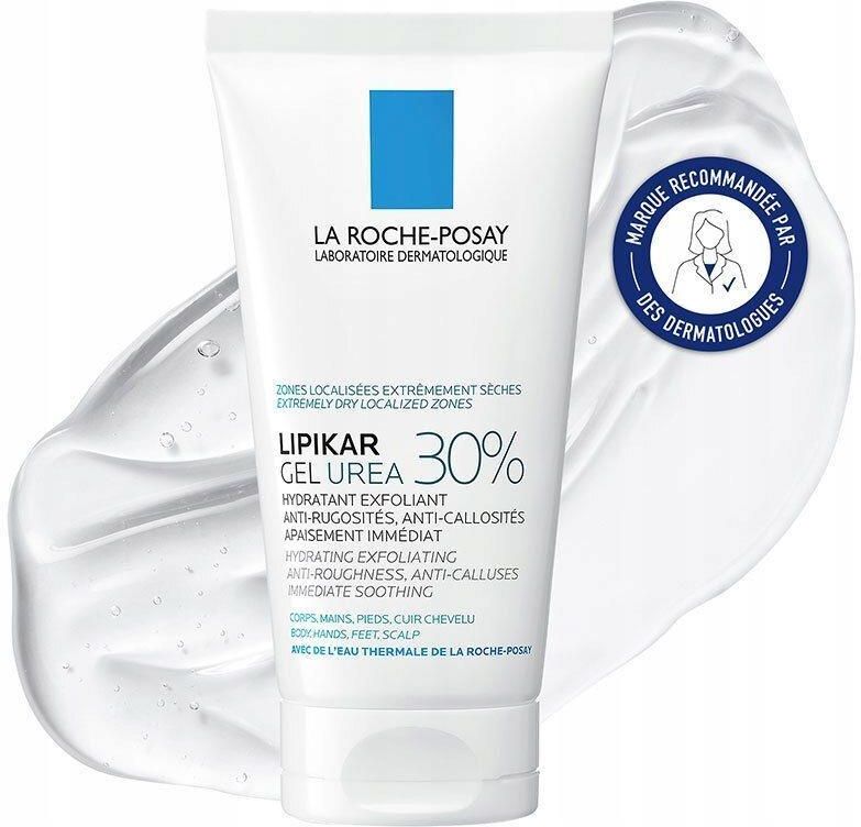 La Roche Posay Lipikar Gel Urea 30% nawilżający żel złuszczający 50ml Produkty nowy, oryginalny Żel na szorstką skórę i odciski – natychmiastowa ulga dla ekstremalnie suchych miejsc Intensywna kuracja dermatologiczna, która od pierwszego użycia widocznie poprawia stan skóry z objawami nadmiernego rogowacenia. Skutecznie redukuje suche plamy, odciski i zrogowacenia – nawet te najbardziej uporczywe – na ciele, dłoniach, stopach oraz skórze głowy. Formuła oparta na 30% moczniku i niacynamidzie zapewnia skuteczność bez podrażnień: • 30% Urea: działa złuszczająco, nawilżająco i antybakteryjnie • Niacynamid: koi i wzmacnia barierę ochronną skóry Testowany dermatologicznie na skórze wrażliwej. Konsystencja:Przezroczysty żel, który szybko się wchłania i łatwo rozprowadza. Sposób użycia:Stosuj raz lub dwa razy dziennie na wybrane, problematyczne obszary. Nie stosować na twarz. Omijaj okolice ust i oczu. Nie są wymagane żadne specjalne środki ostrożności przy używaniu tego produktu w normalnych lub racjonalnie przewidywalnych warunkach użytkowania. OPIS PRODUKTU Seria: Lipikar Gramatura: ml Pojemność: 50 Płeć: unisex Słońce: nie Działanie: nawilżające, pękająca skóra stóp, regeneruje, zmiękcza, złuszcza martwy naskórek Konsystencja: żel Linie elitarne: nie Lokalizacja: całe ciało, dłonie, stopy Pielęgnacja ciała: tak