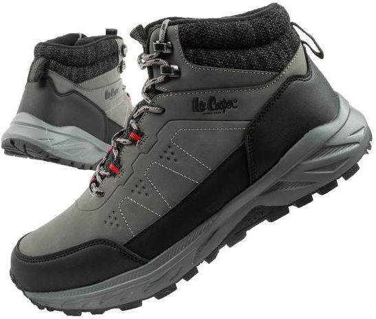 Buty sportowe męskie zimowe trekkingowe Lee Cooper r.43 ocieplane za kostkę Specyfikacja ✅Nazwa produktu: Buty męskie Lee Cooper, kod produku LCJ-25-01-3722M ✅Marka: Lee Cooper ✅Typ obuwia: Trapery, sportowe ✅Rozmiar: 43 ✅Kolor: Szary, czarny ✅Materiał cholewki: Skóra ekologiczna, materiał tekstylny Buty męskie na zimę ✅Wnętrze: Tekstylne - ocieplane, gwarantujące wysoki komfort użytkowania ✅Podeszwa: Wysokogatunkowe tworzywo, lekkie i trwałe ✅Komfort: Zapewnia swobodę ruchu ✅Zastosowanie: Idealne do stylizacji ✅Cechy dodatkowe: Wygodne, wytrzymałe Buty na zimę dla mężczyzn Cholewka wykonana z najwyższej jakości skóry ekologicznej oraz materiału tekstylnego, którą warto przed użyciem zaimpregnować, aby buty posiadały dodatkową ochronę przed wilgocią. Miękkie delikatne ocieplenie z polaru, skutecznie chroni przed zimnem, a podwyższona cholewka stabilizuje kostkę i zwiększa wygodę noszenia. Gruba, w pełni amortyzowana podeszwa zewnętrzna zapewnia wygodę podczas każdego spaceru. Wykorzystany w obuwiu system sznurowania zapewnia idealne dopasowanie do stopy. Idealne obuwie do każdej modnej stylizacji. Uniwersalny design butów Lee Cooper świetnie pasuje zarówno do casualowych, jak i bardziej sportowych stylizacji. To obuwie, które sprawdzi się w jesienno-zimowych warunkach, gwarantując ciepło, wygodę i modny wygląd.