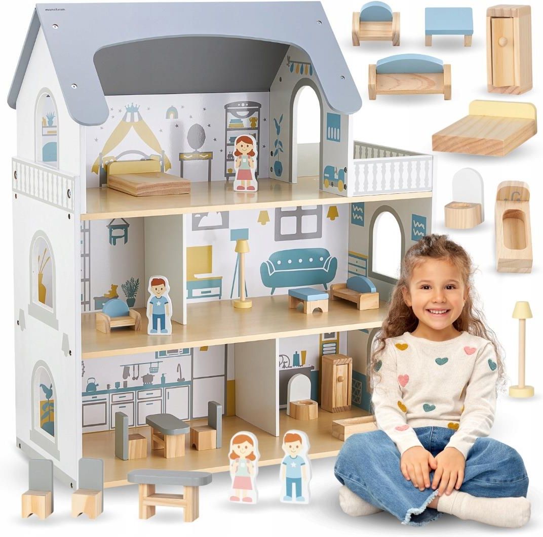 Mamabrum Zabawka Edukacyjna Duży Interaktywny Drewniany Domek Dla Lalek Akcesoria Kętrzyn