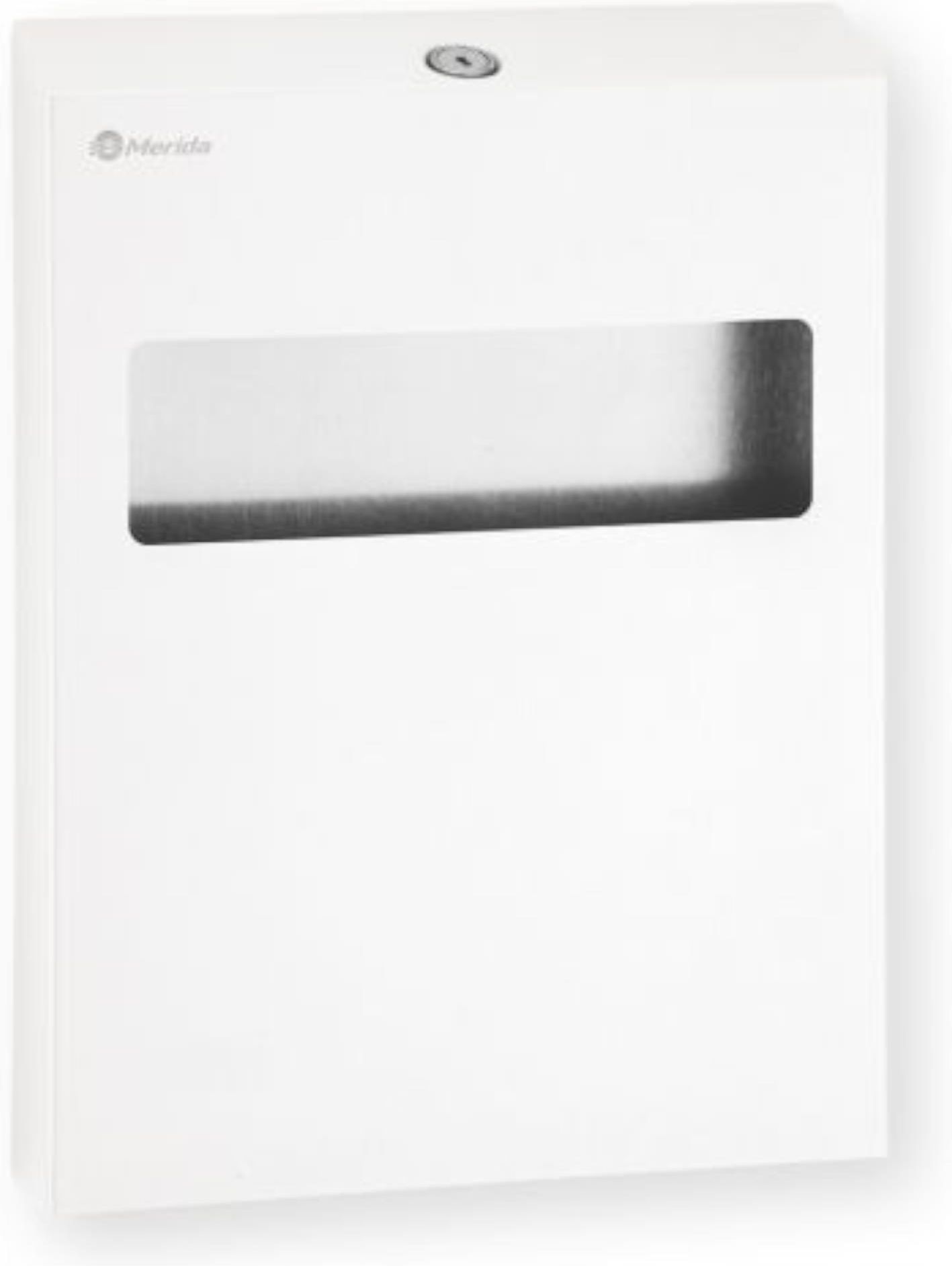 MERIDA POJEMNIK NA PODKŁADKI HIGIENICZNE WHITE, GSB006 symbol produktu: GSB006 OPIS PRODUKTU wymienne wkłady zawierają 100 szt. papierowych podkładek higienicznych wykonany ze stali nierdzewnej pokrytej specjalną strukturalną białą powłoką zabezpieczony trwałym stalowym zamkiem bębenkowym zamek zlicowany z powierzchnią urządzenia łączenia boków spawane i szlifowane niewidoczne zawiasy Pasujące wkłady: GP11 Części zamienne: kluczyk do urządzeń linii STELLA (ZX097), zamek z kluczykiem, zlicowany, do urządzeń z linii stalowej STELLA (ZX082) PARAMETRY TECHNICZNE wysokość: 29 cm szerokość: 21,5 cm głębokość: 4 cm materiał: stal nierdzewna z powłoką strukturalną